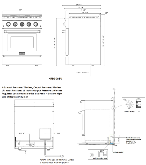 | Electrical Requirements | 240V, 4-Prong 14-50R Power Outlet |