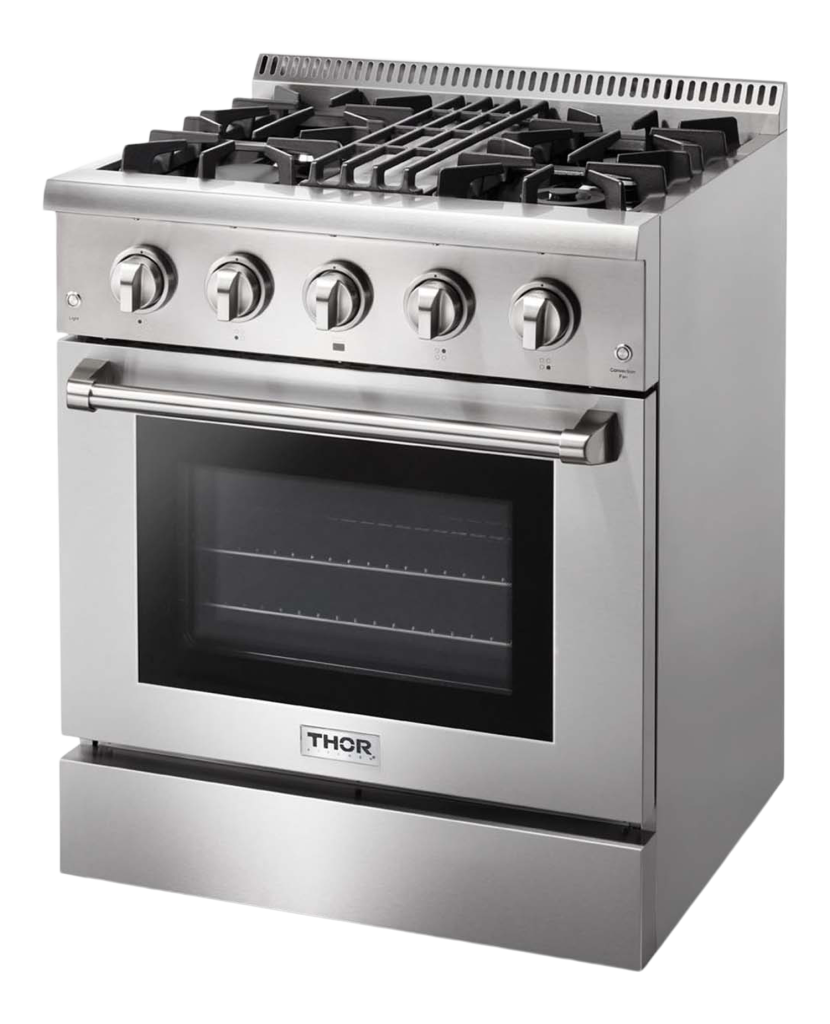 THOR Kitchen offers the power and performance of a premium professional appliance at a practical price. The THOR Kitchen 30 Inch Professional Dual Fuel Range is a stainless-steel machine that is designed with professional features and functionality. This powerful range has 4 burners including an 18,000 BTU single burner, a 15,000 BTU dual burner and two 12,000 BTU single burners giving you the flexible cooktop you’ve been dreaming about.