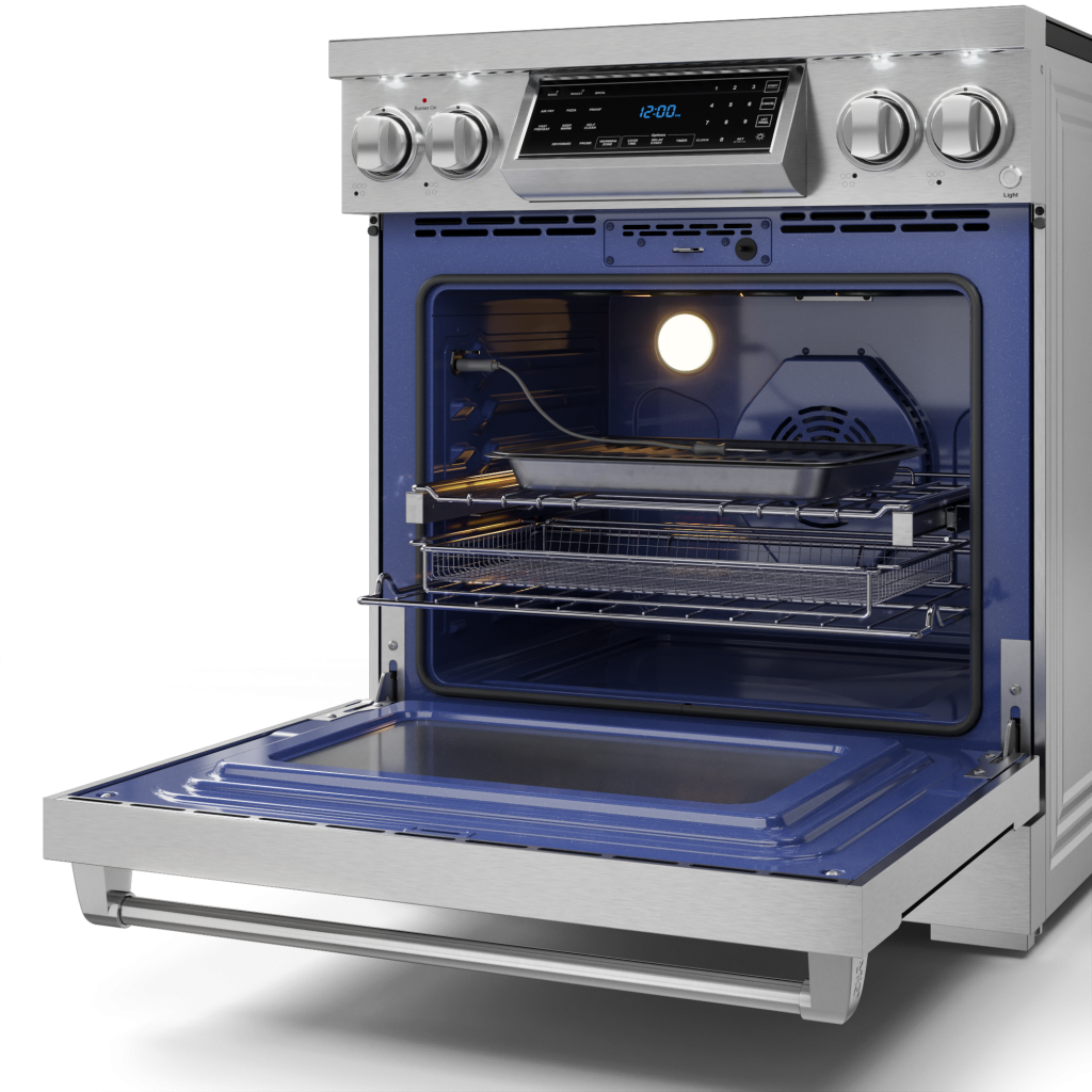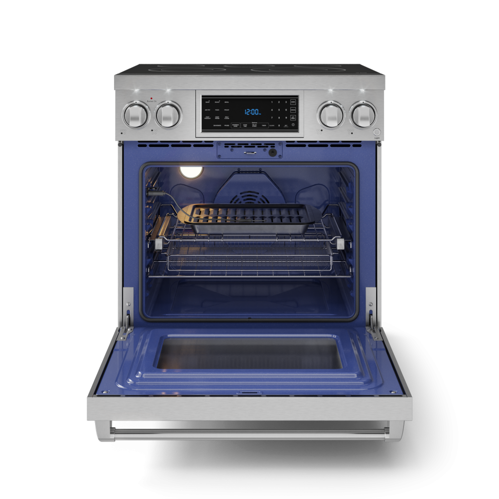 Designed for chefs who demand precision and power. With high-output burners, even heat distribution, and intuitive controls, this 30 Inch Professional Electric Range in Stainless Steel elevates your cooking experience. Built for durability and performance, it brings restaurant-grade quality to your home kitchen, making every meal exceptional.