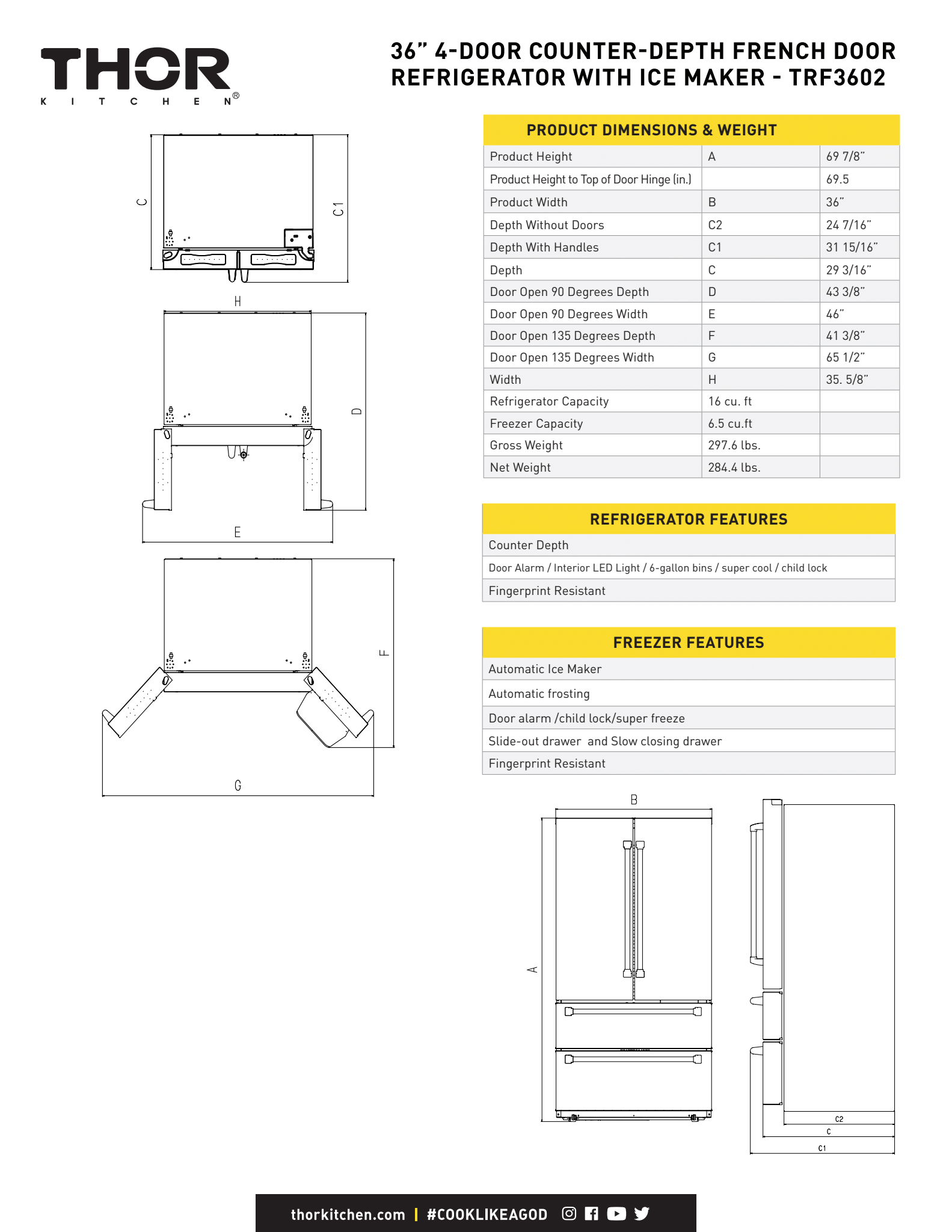 Be the first to review “Thor Kitchen Professional 36 In. Counter Depth 22.5 cu. ft. Refrigerator Stainless Steel with Ice Maker, TRF3602” Cancel reply