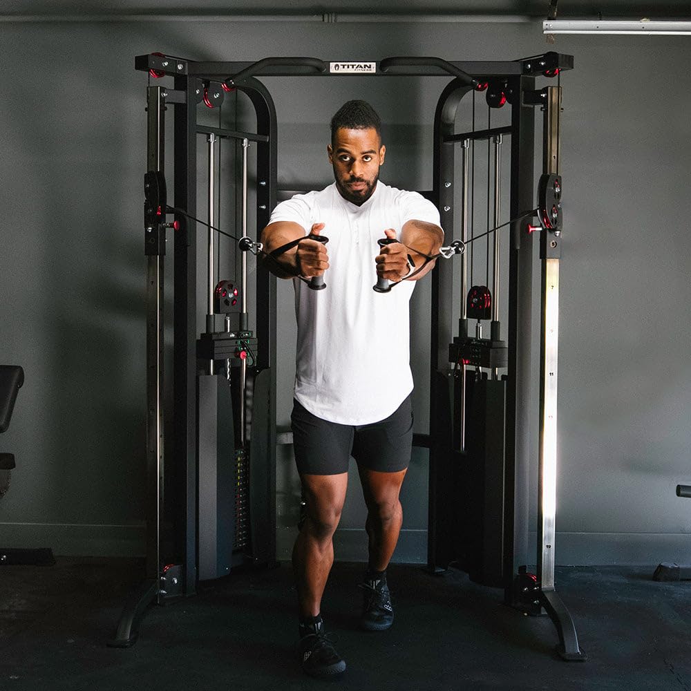 Titan Fitness Functional Trainer, Cable Crossover Machine with 200 LB Double Weight Stack, 2:1 Cable Pull Station, Home Gym Workout Weight Training Machine with Attachments
