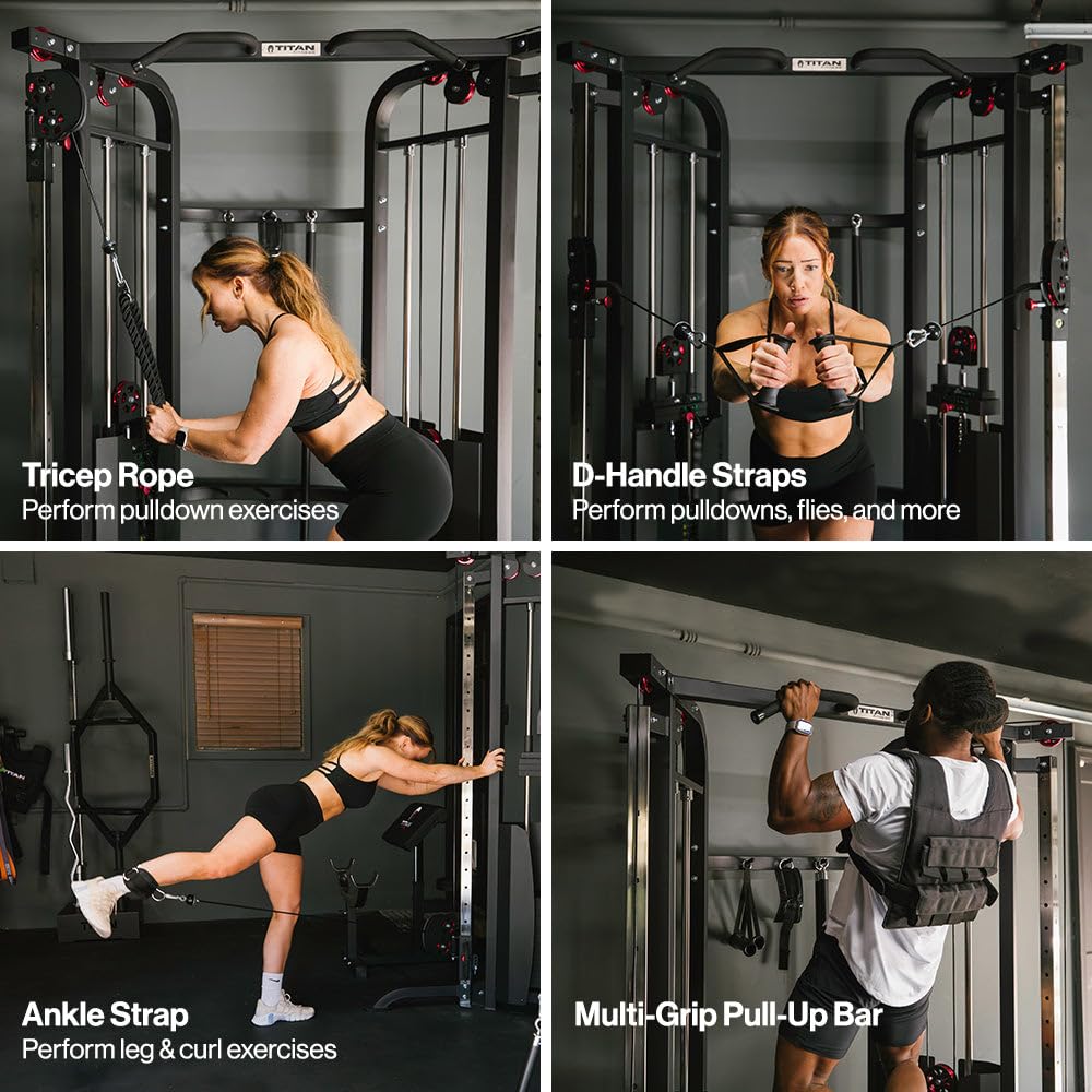 • ACCESSORIES INCLUDED: Comes with a rope handle, single D and double D handles, long bar and short bar handles, and dual short strap handles – plus integrated pull-up handles for even more variety.