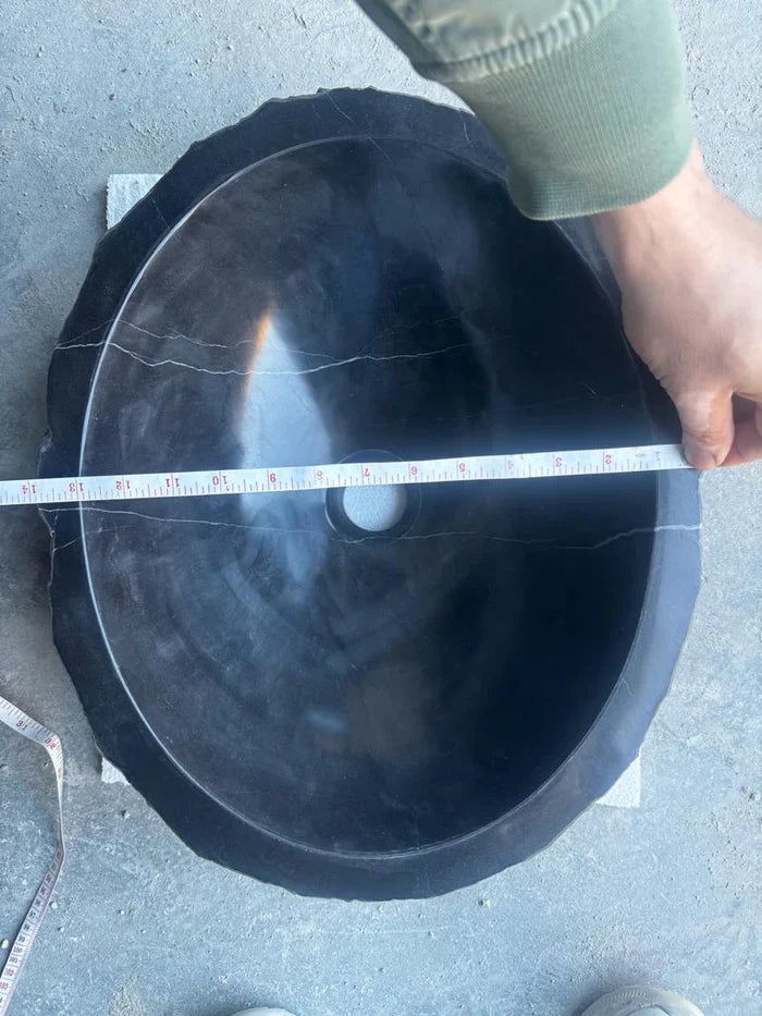 Toros Black Rustic Marble Above Vanity Bathroom Oval Sink (L)17″ (W)14″ (H)6″ is Handcrafted in Turkey. Hand-crafted to be used in Bathrooms Above Counter.