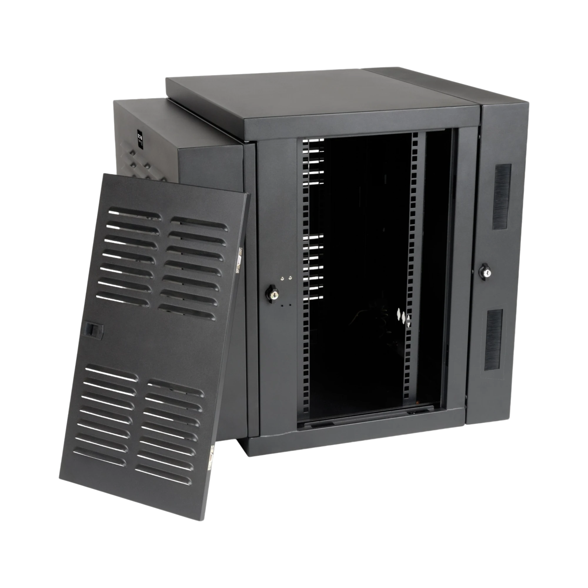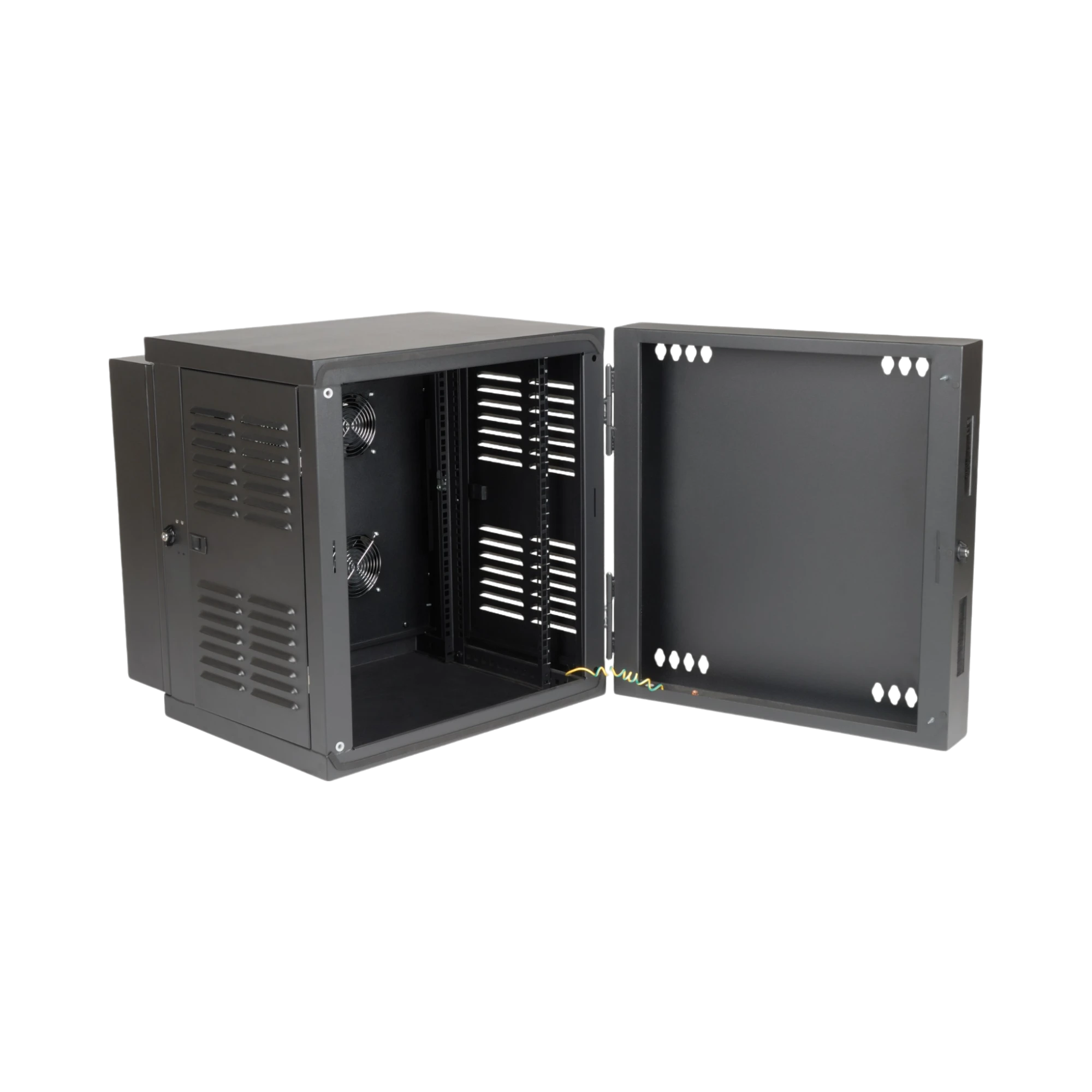 Physical security comes from locking front, side, and rear access points that deter tampering on busy factory floors or in warehouse aisles. The front and rear doors are reversible, so you can choose the swing direction that best fits tight layouts. Because the rack ships fully assembled, wall installation is quick, allowing you to deploy critical equipment with minimal downtime.