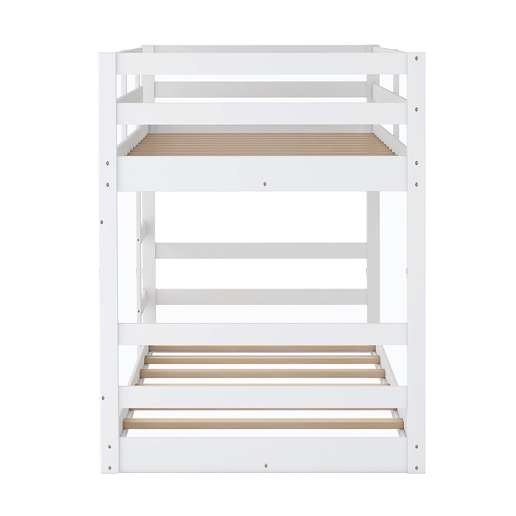 v [Solid Construction] This muti-functional bunk bed is crafted from a solid pine wood frame, with commercial grade MDF board for quality control and durability.Guardrails are solidly attached for added safety.