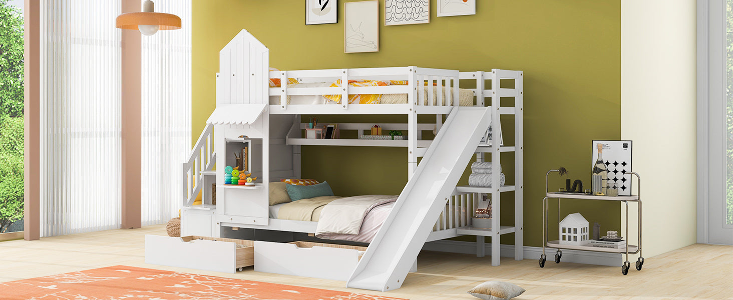 Be the first to review “Twin-Over-Twin Castle Style Bunk Bed with 2 Drawers 3 Shelves and Slide – White” Cancel reply