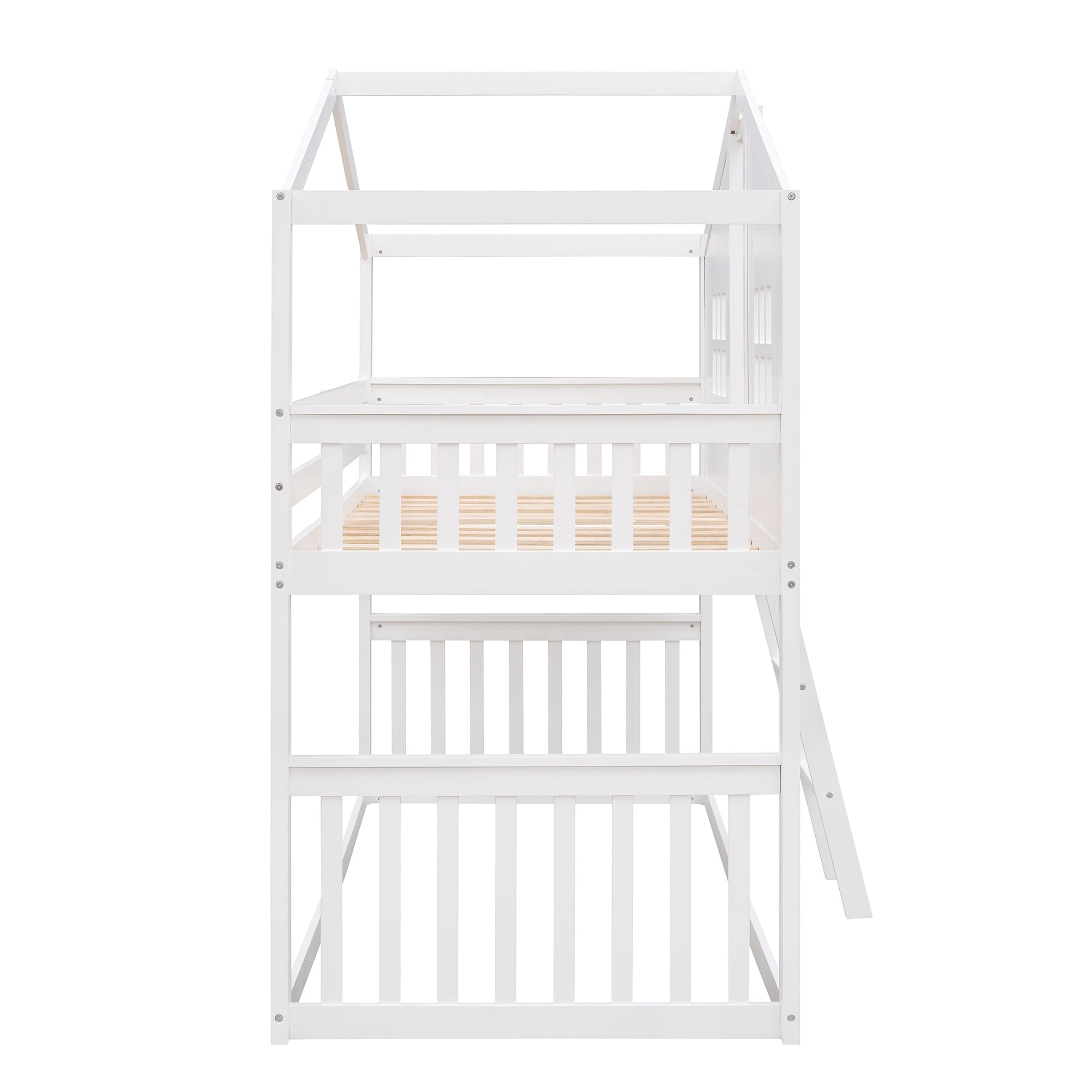 [House Shaped] Featuring a pitched roof and wall section with window, this unique and intricately designed bunk bed creates a fun and adorable space that not only serves as a comfortable sleeping area but also double as a space for you to play and have fun.