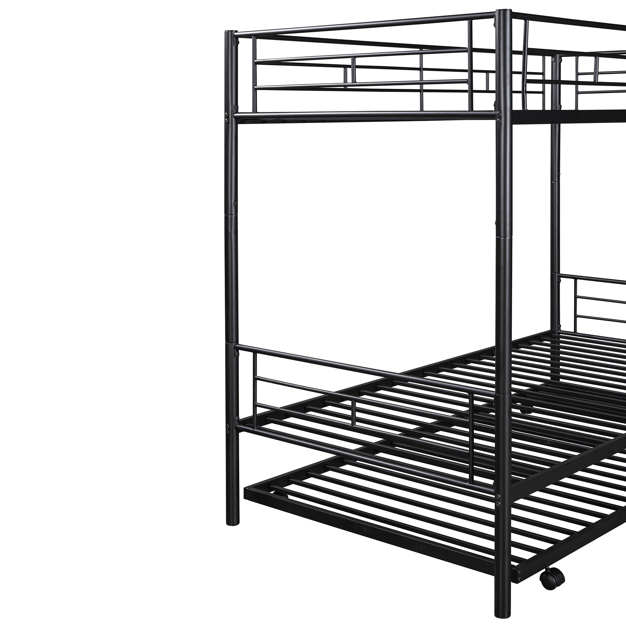 v Ultimate space saver, ideal for small bedrooms as it fits three standard twin size mattresses (sold separately). Trundle includes four (4) easy-glide casters – 2 locking and 2 non-locking