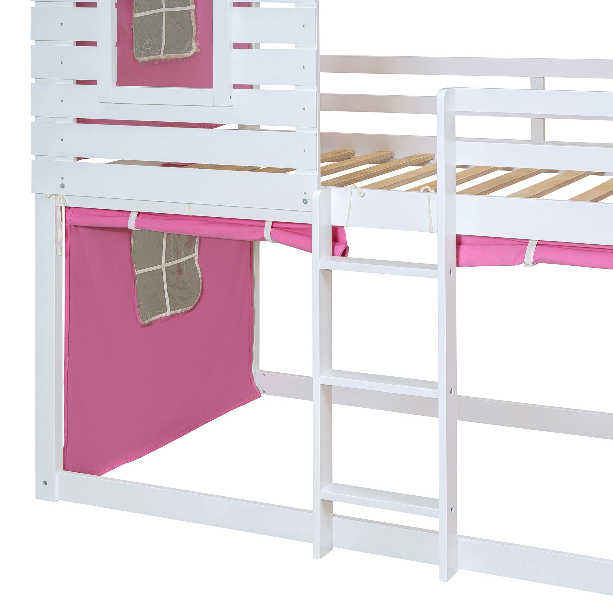 Be the first to review “Twin Size Bunk Wood House Bed with Tent, Pink+White” Cancel reply