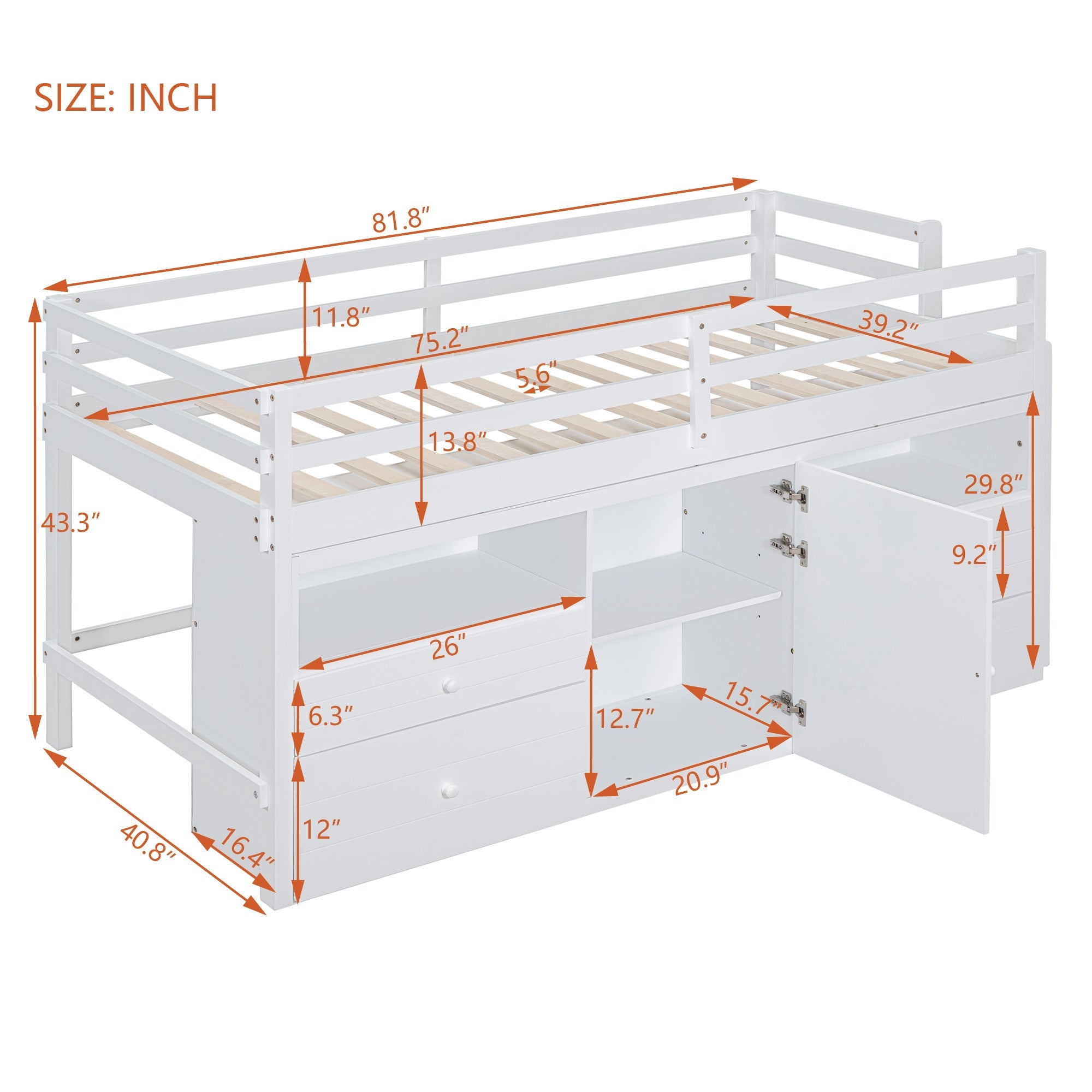 - [Space-saving]The 4 big drawers underneath the loft bed, the shelves along with the Cabinet work together to provide you enough space to store home items.It saves your a lot of trouble and make your room tidy and clean.
