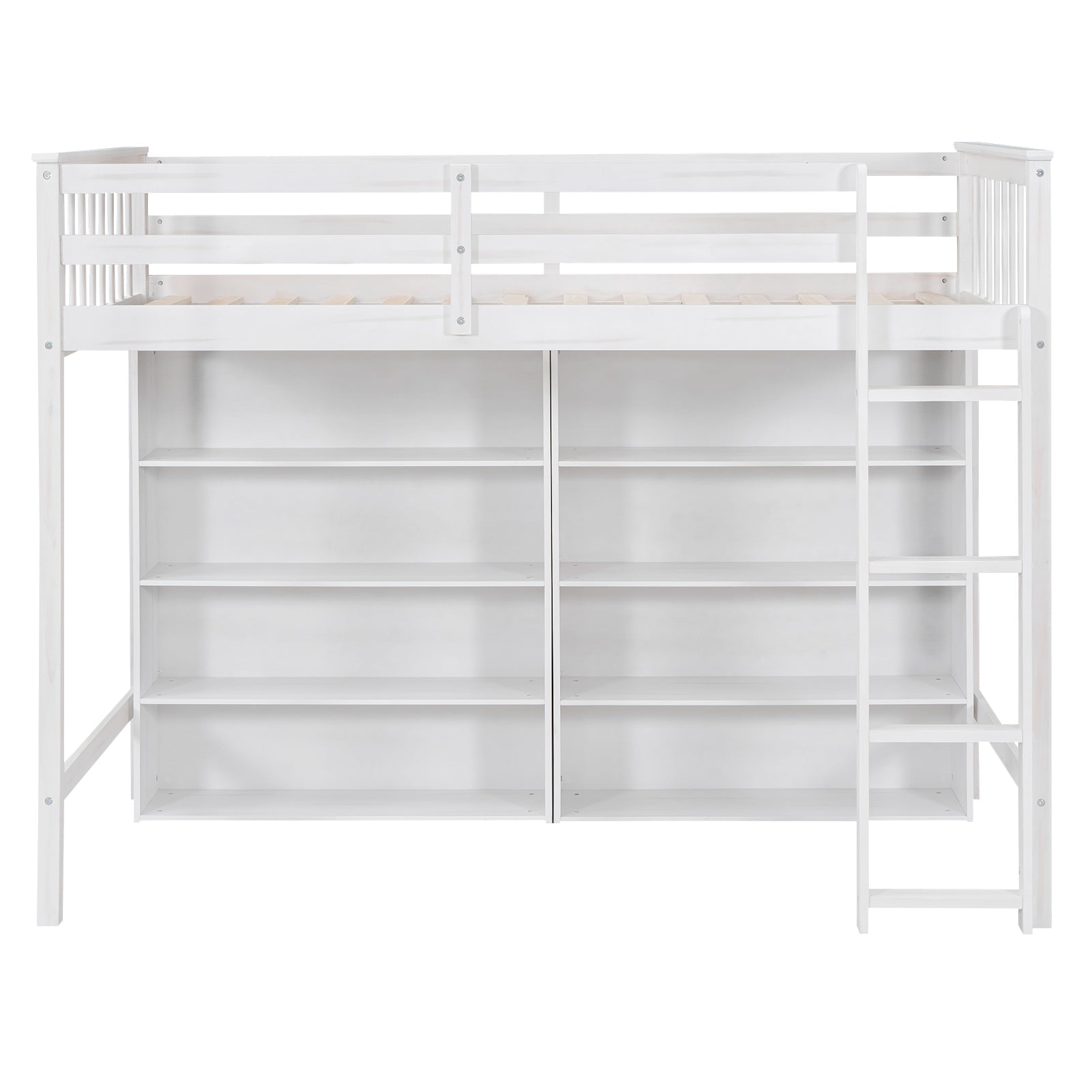 - [Large Storage Shelves] This modern style loft bed with 8 large open shelves which provide extra space to store you necessities like shoes or books.