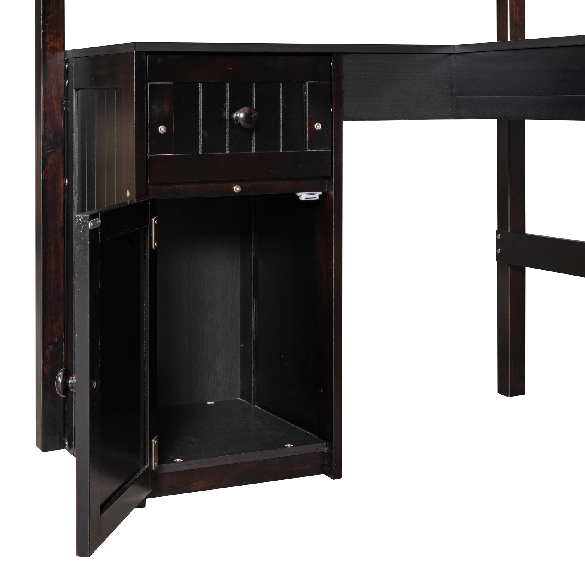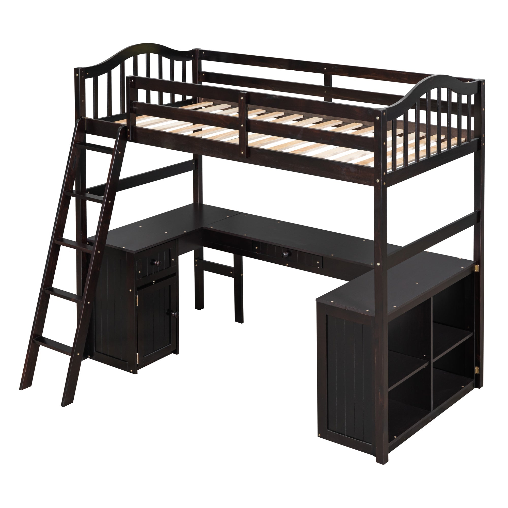 Twin size Loft Bed with Drawers, Cabinet, Shelves and Desk, Wooden Loft Bed with Desk