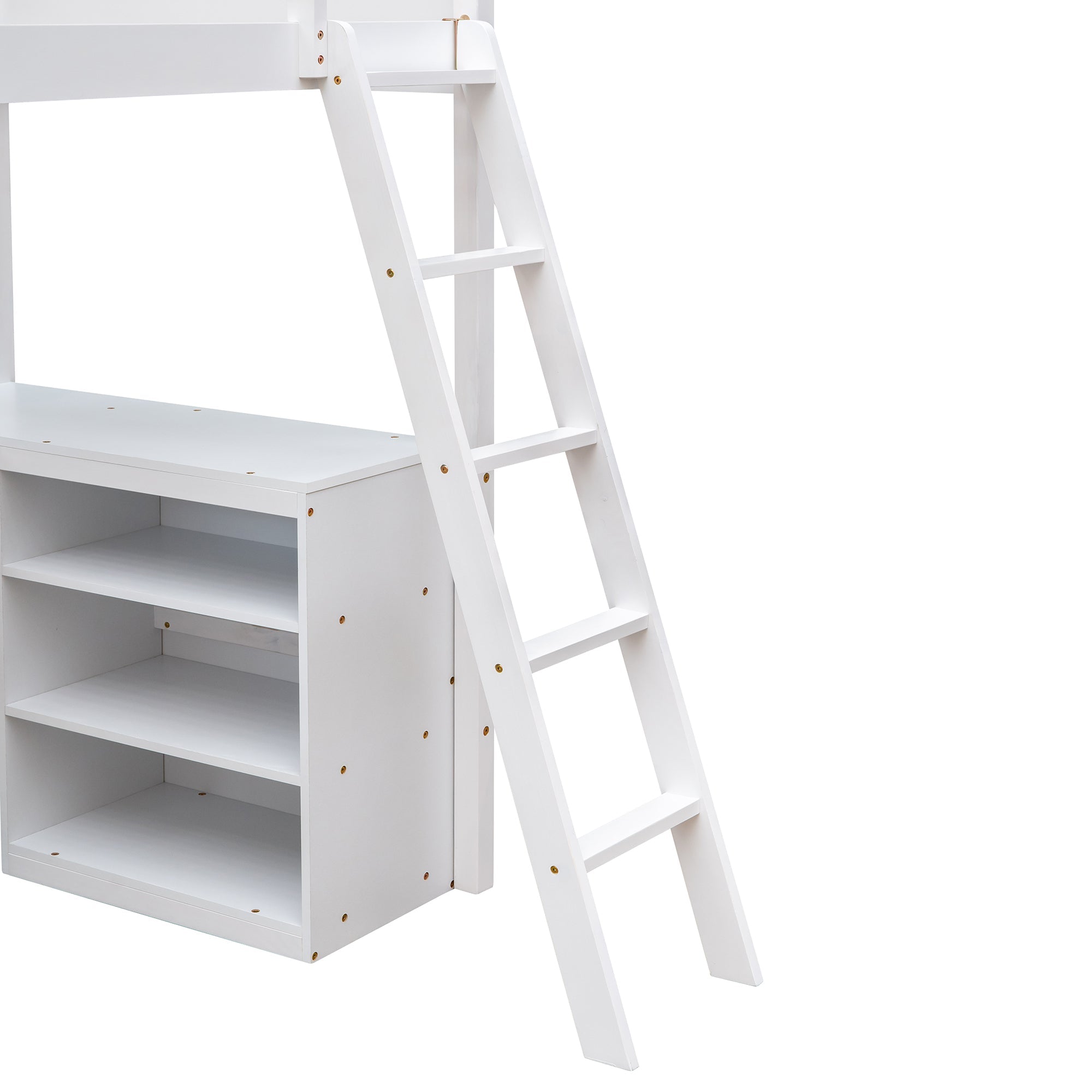 - [Versatility galore] The space underneath the twin size loft bed is a good place for you to read, do homework or play and create their own world to be explored. Coming with bookshelves and desk, the loft bed helps to store books, display decorations, or to place a laptop.