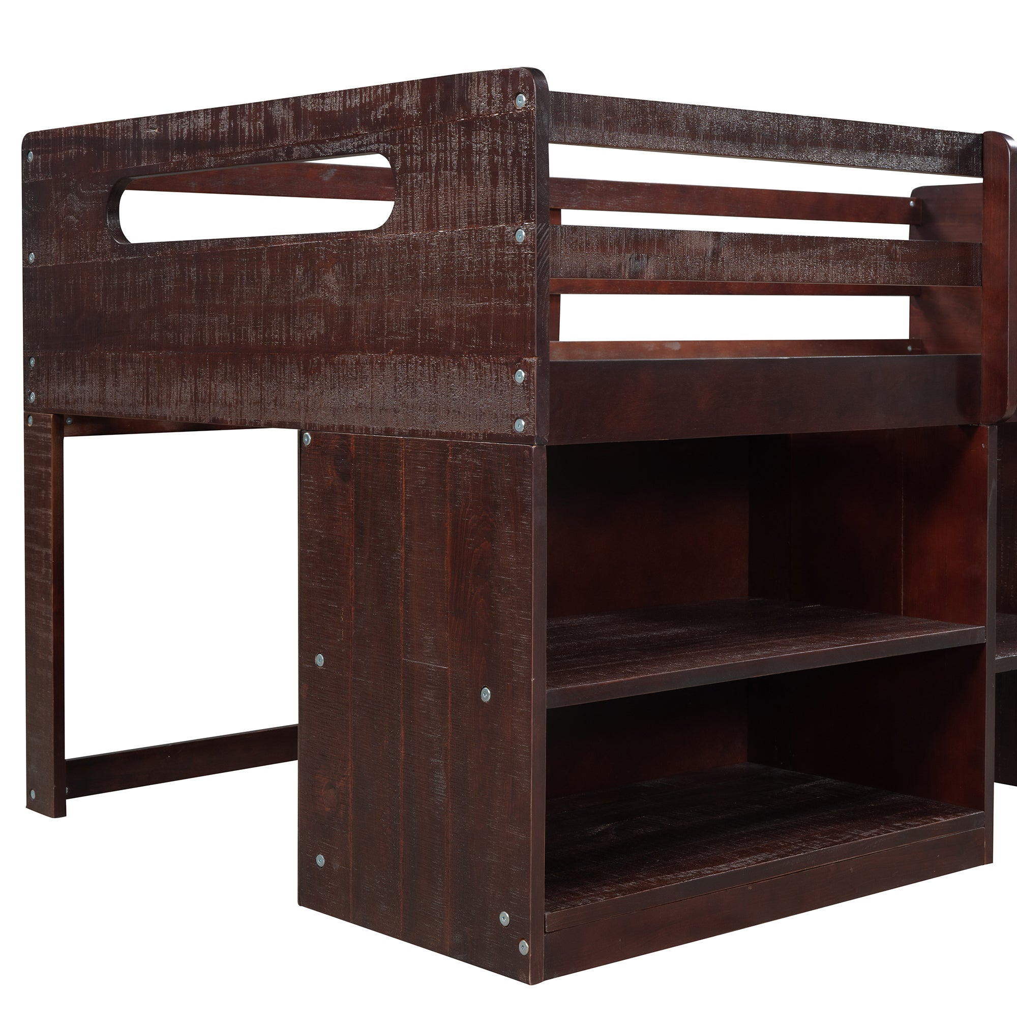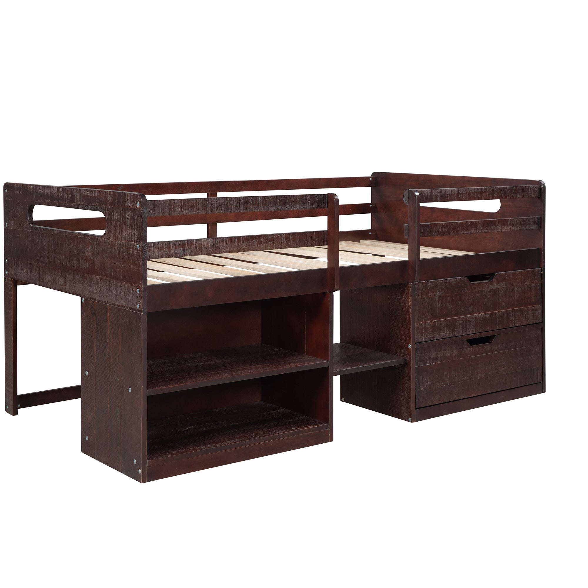 Twin size Loft Bed with Two Shelves and Two drawers (Antique Espresso)