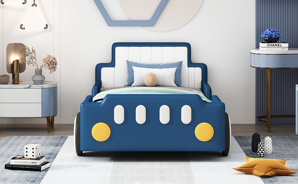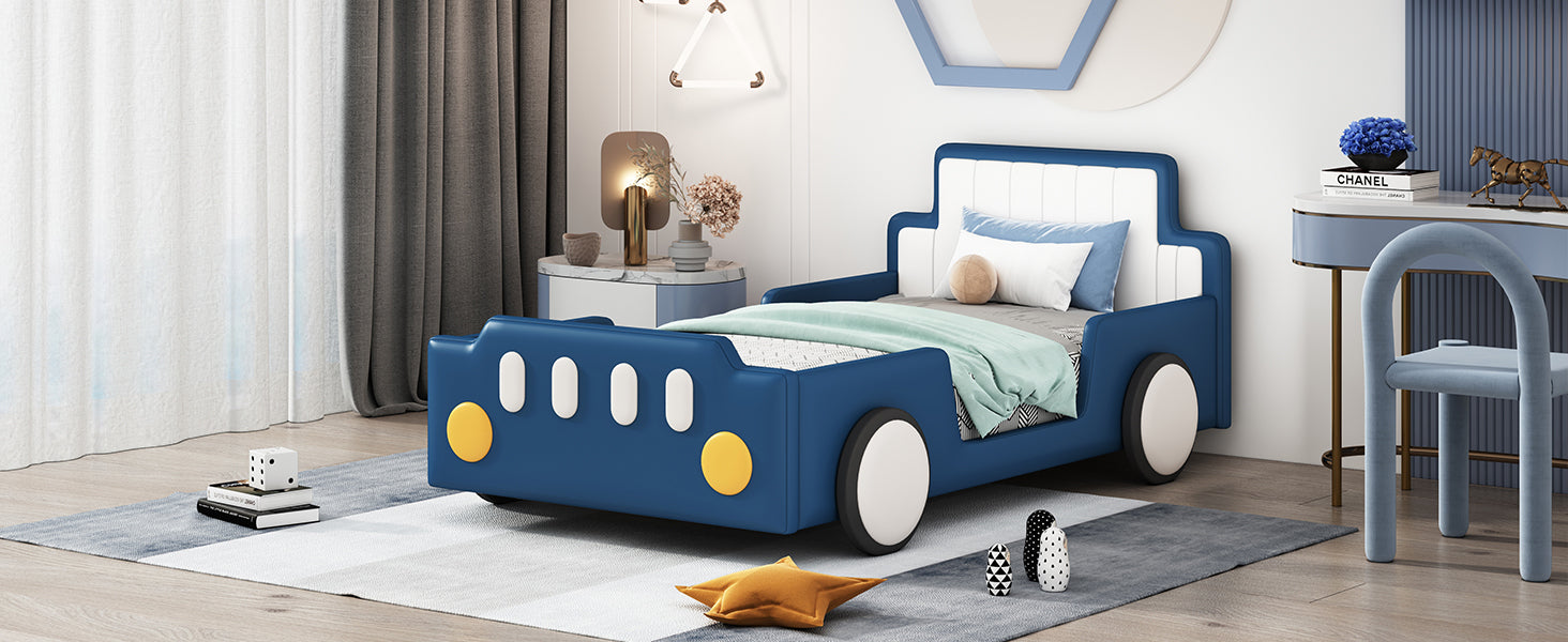 Twin Size Race Car-Shaped Platform Bed with Wheels