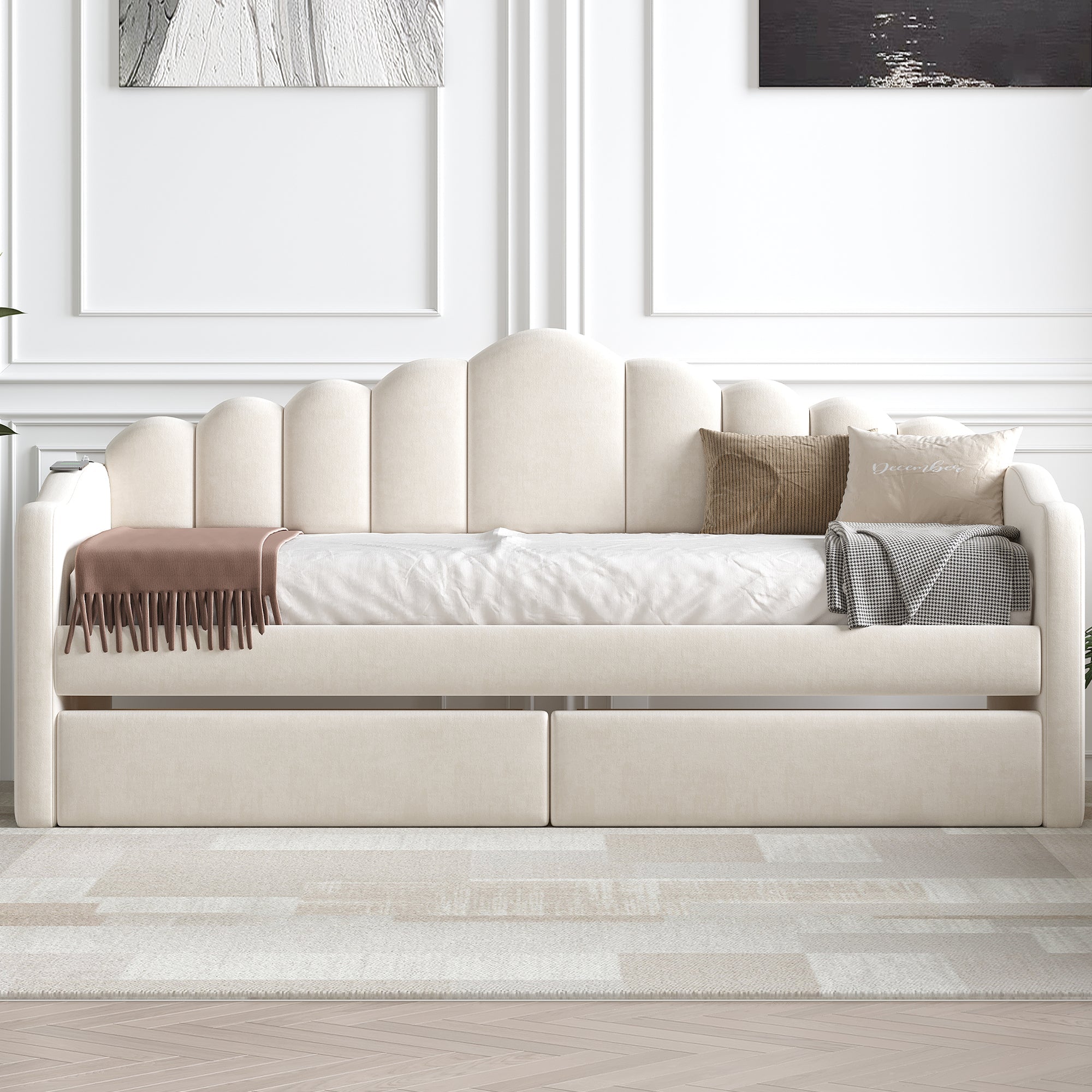 - [Maximized space] This daybed with two large drawers at the bottom, offering ample storage space for your convenience. Designed with functionality in mind, this daybed seamlessly combines comfort with practicality. Whether you need extra bedding, blankets, or pillows, the spacious drawers provide an ideal solution for keeping your living space organized and clutter-free.