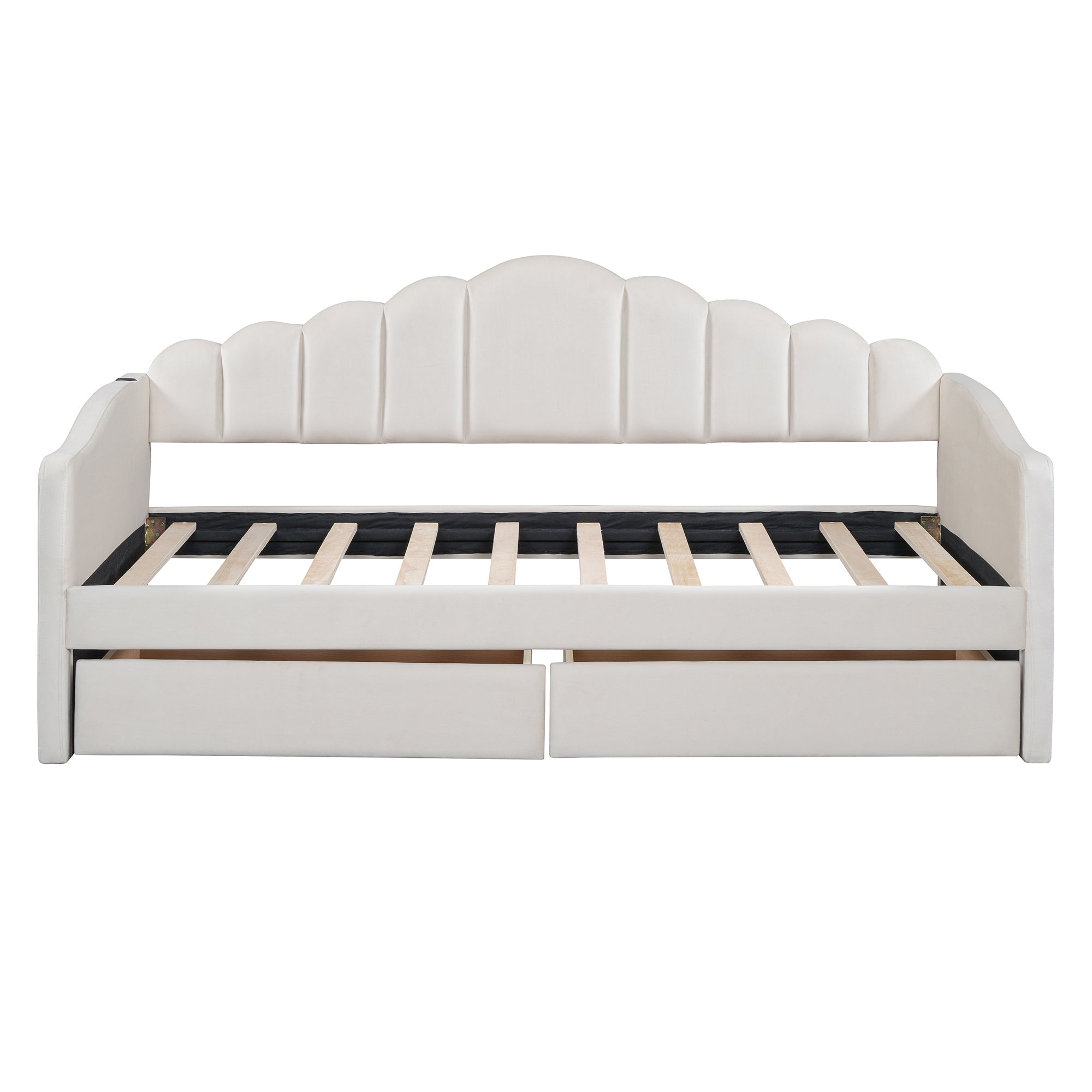 Twin size Upholstered Daybed with 2 Drawers ,Velvet Sofabed with USB Charging Ports