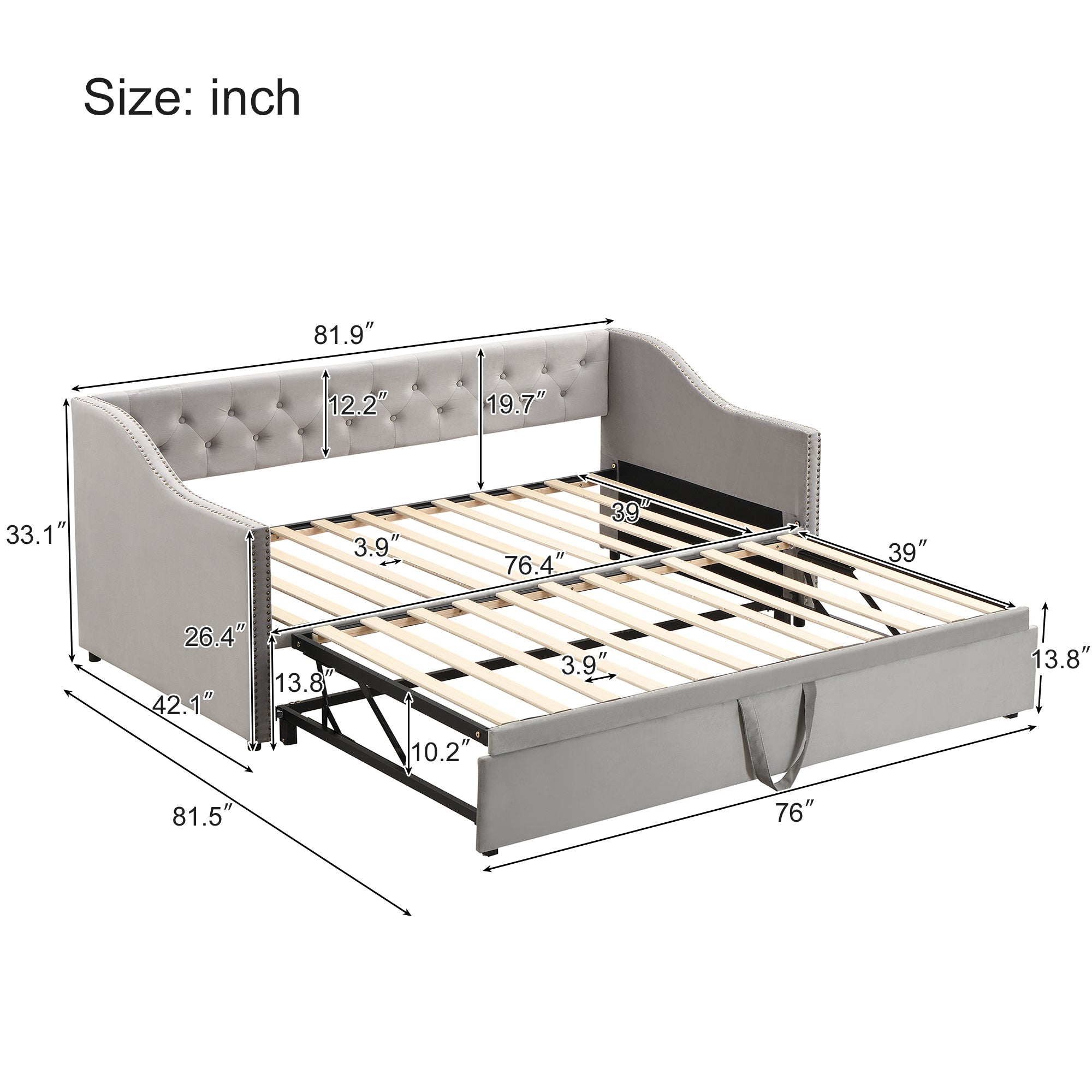 - [Twin to King Design] When the trundle is pulled out, this daybed can be expanded from twin size to an irregular King size.The twin size is suitable for children or daily use, but when the guests arrive, King size is the best choice.
