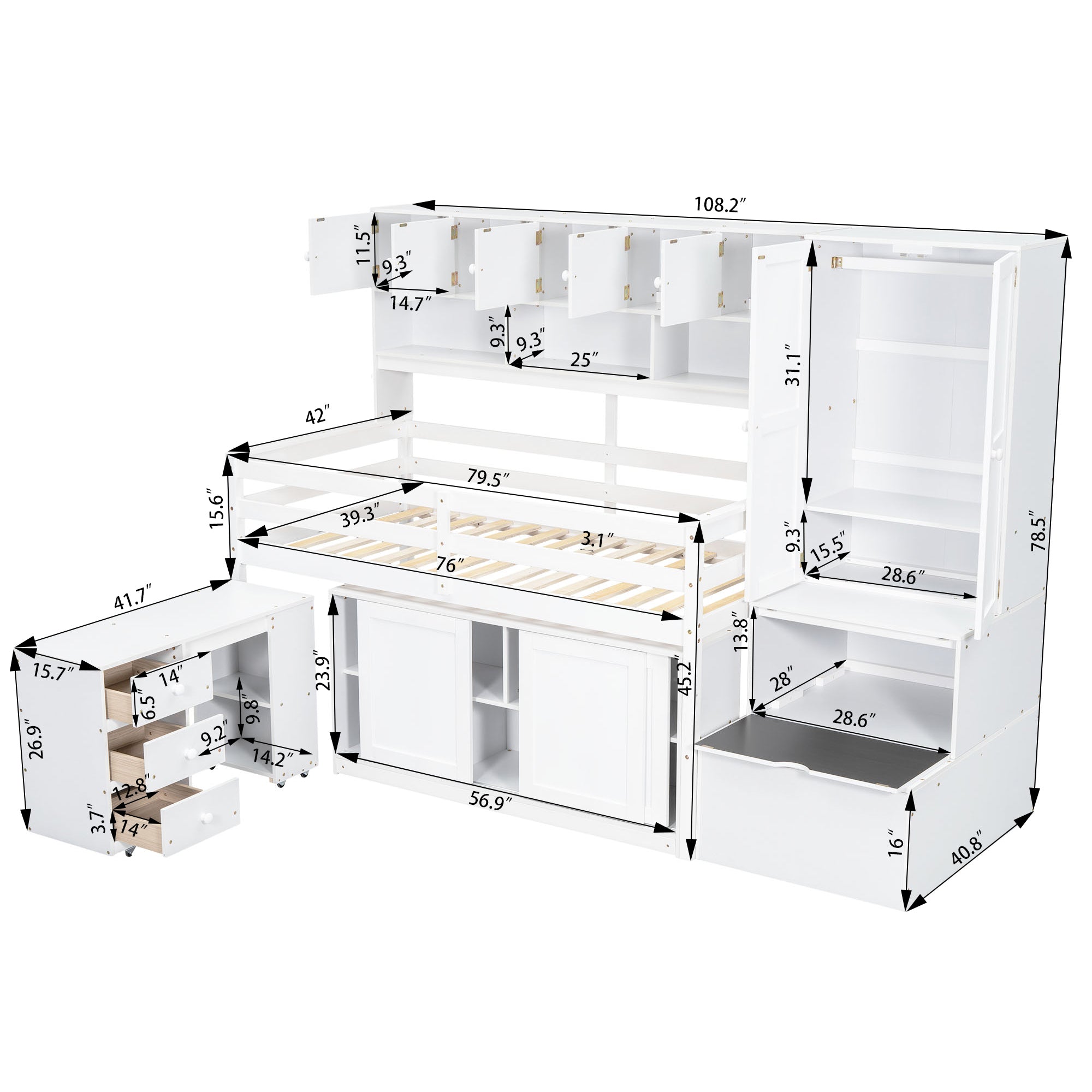 Be the first to review “Twin Size Wooden Loft Bed Big Storage with Under-bed Desk, with Drawers, with Shelves, White” Cancel reply