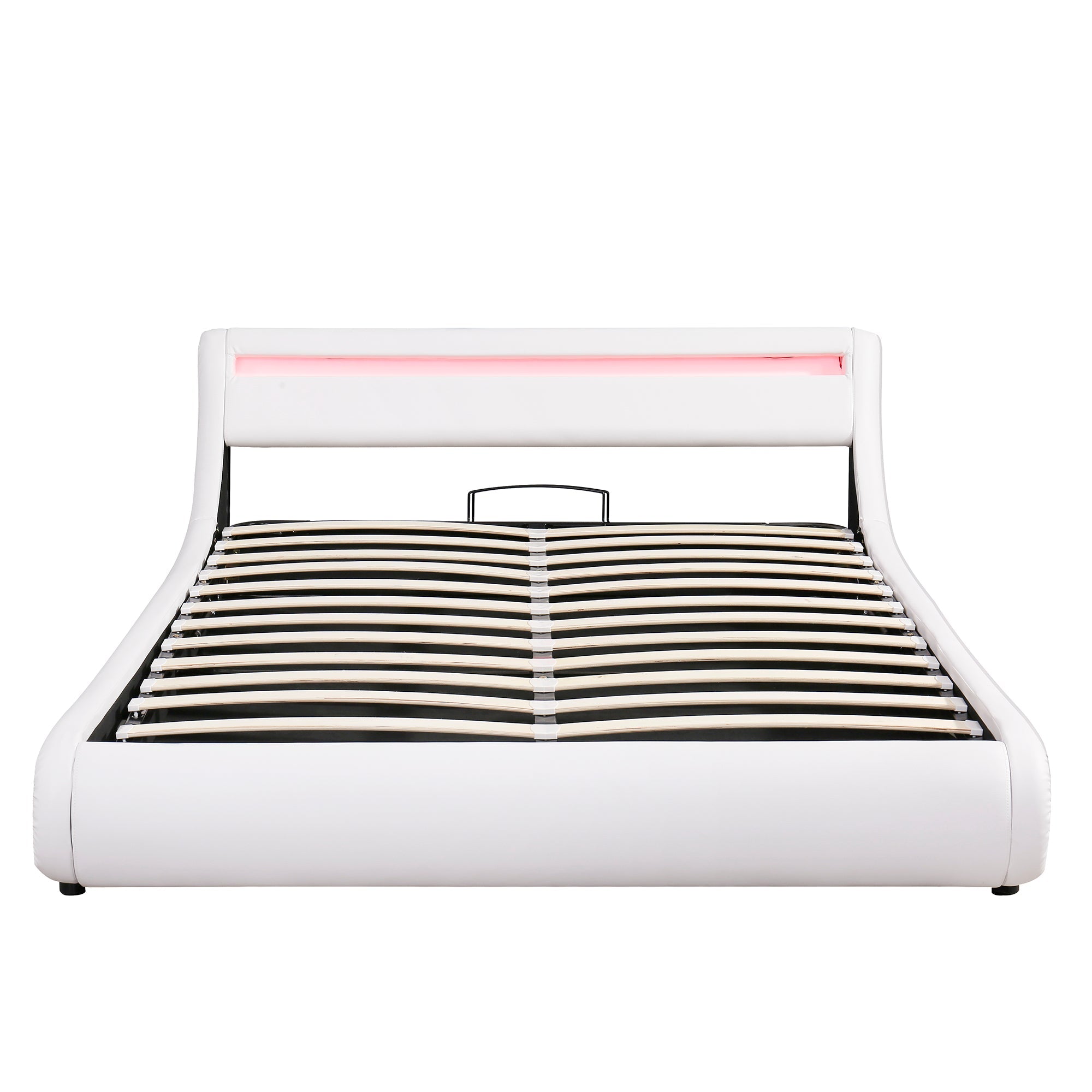 Upholstered Faux Leather Platform bed with a Hydraulic Storage System with LED Light Headboard Bed