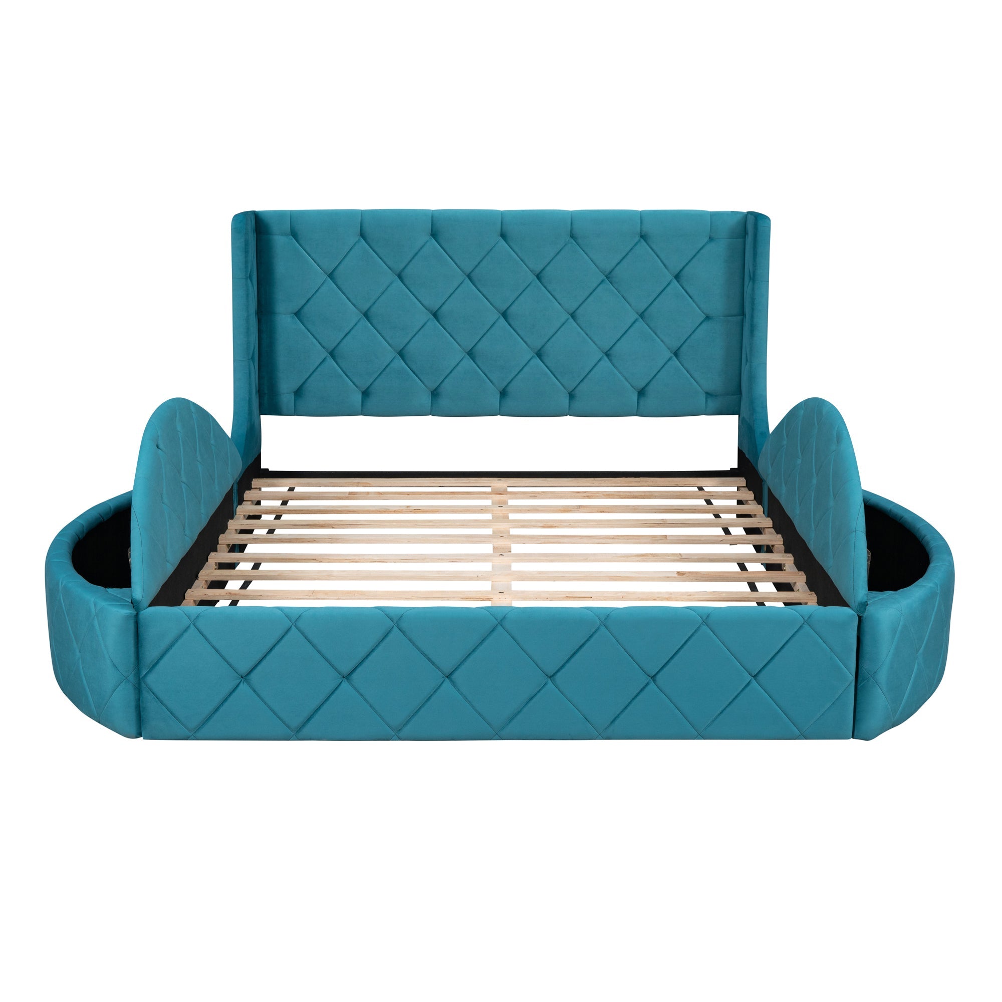 This beautiful upholstered bed features two semi-circular storage stools on the left and right, a feathered headboard and a large storage drawer at the rear, which is both functional and beautiful for you The bedroom adds splendor. Sturdy wood frame construction and wood slat system add extra stability and safety. With such a sturdy, on-trend design, you can have a unique and surprising shopping experience. We expect a well designed bed to suit anyone’s needs, our beds come in four colors that will suit any of your different bedroom decor