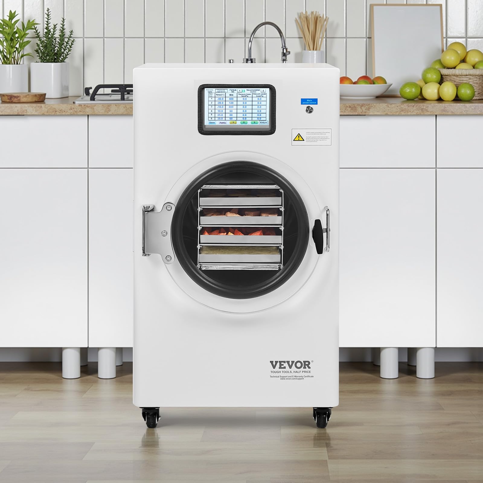 • Visualized Freeze-Drying Process: The high-transparency acrylic door allows you to closely monitor the entire freeze-drying process. The 304 stainless steel trays are durable and reliable, ensuring peace of mind. The design also includes swivel casters for easy mobility