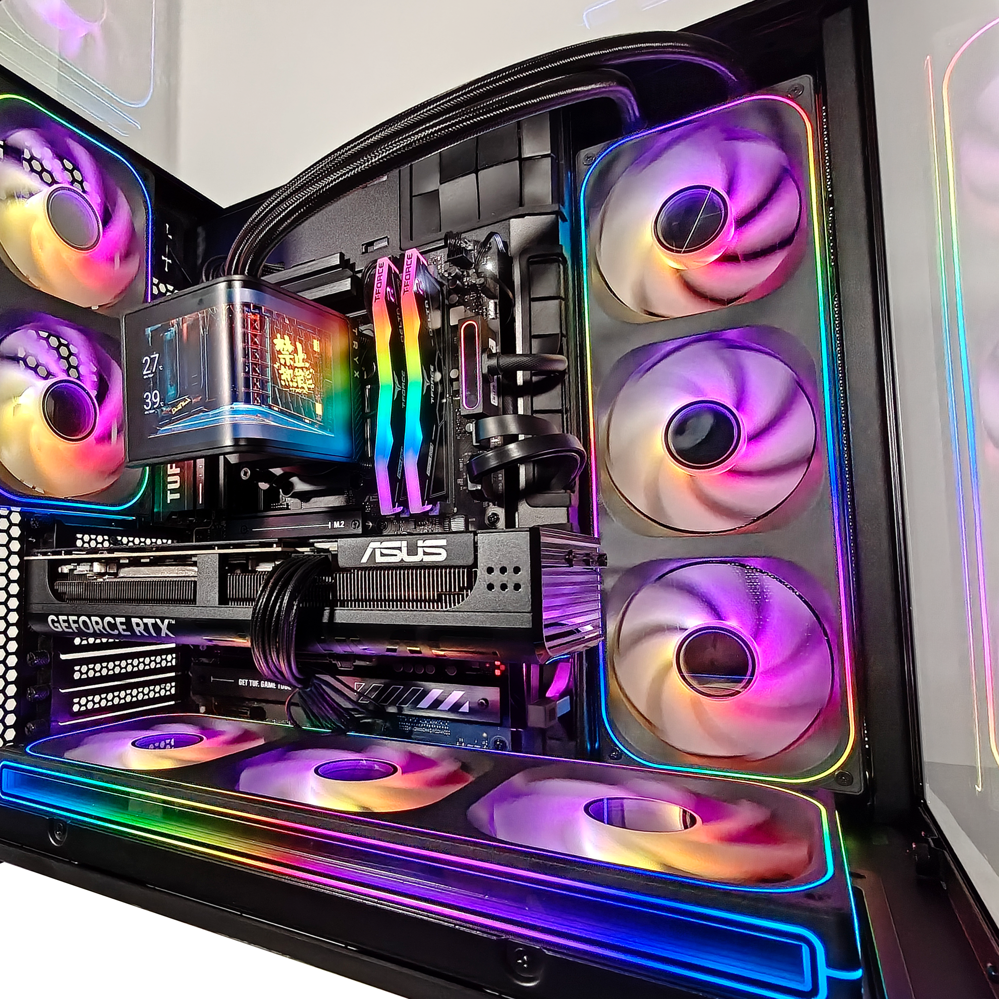 Show off your build in stunning clarity with the Lian Li O11 Vision Compact, a sleek, futuristic case that turns your PC into a centerpiece. Featuring a crystal-clear glass front and side panel, or an optional mesh top for boosted airflow, this case lets you choose between show-stopping visuals or high-performance cooling on the fly. Packed with an AMD Ryzen™ 7 9800X3D processor, NVIDIA® GeForce RTX™ 5080 graphics, and 32GB of blazing-fast DDR5 RAM, it’s ready to handle anything you throw at it. Behind the scenes, smart cable management and cooling options keep everything crisp, clean, and running smooth. With dual 2TB NVMe SSDs, Wi-Fi 6E, and a powerful 850W PSU, all backed by our Lifetime Warranty and Upgrade Program, this system doesn’t just perform, it impresses.