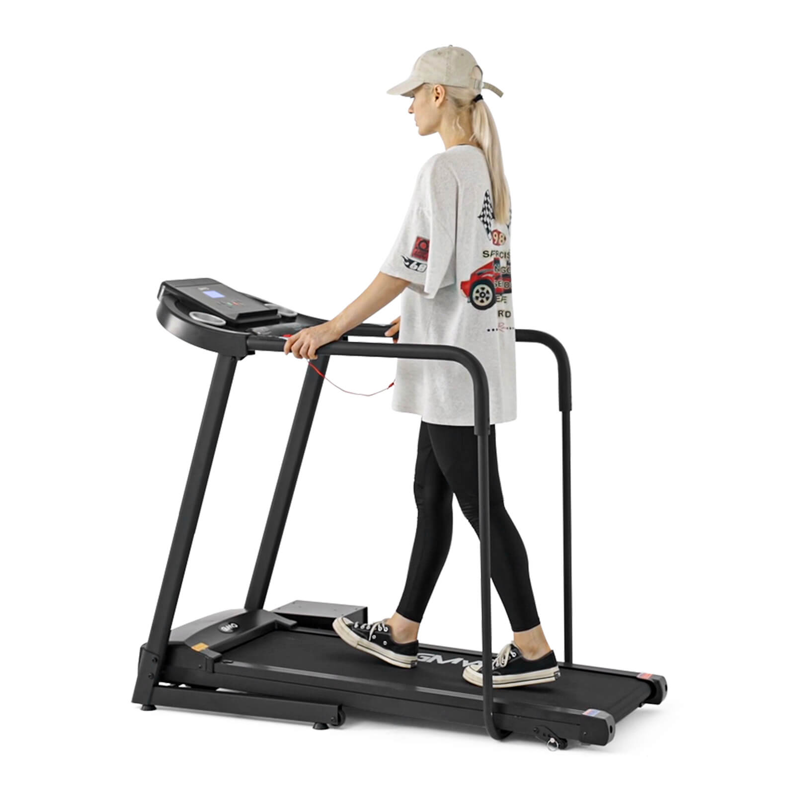 The Walking Treadmill is the perfect solution for seniors or anyone looking for a safe, efficient, and space-saving treadmill for home use. With dimensions of 53.7’’ L × 24.7’’ W × 46’’ H and a compact folded size of 25.4’’ L × 46.3’’ W × 24.7’’ H, this treadmill fits seamlessly into smaller spaces like apartments or homes. Designed with extended multi-grip handrails along the top, middle, and end, it provides extra support and stability, reducing the risk of falls, especially for users with an unstable center of gravity.