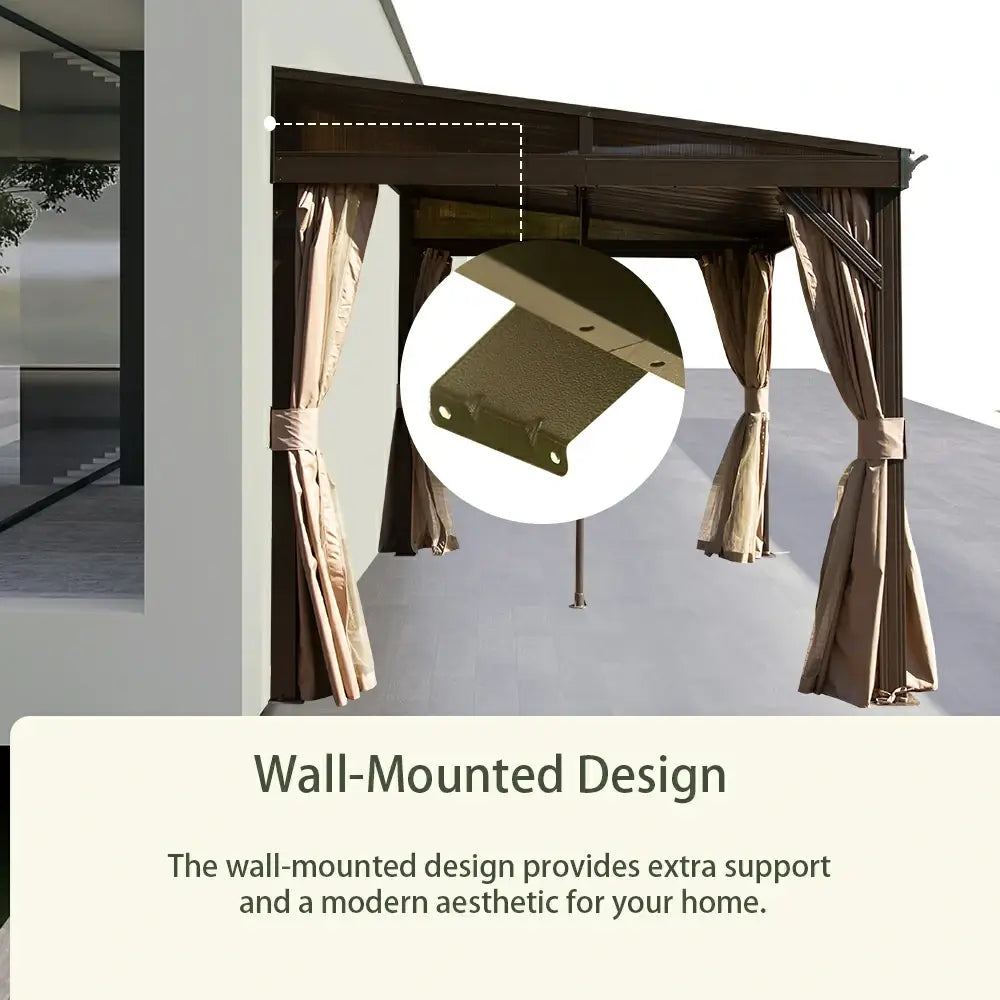 Wall-Mounted Hardtop Gazebo with Drainage Gutters