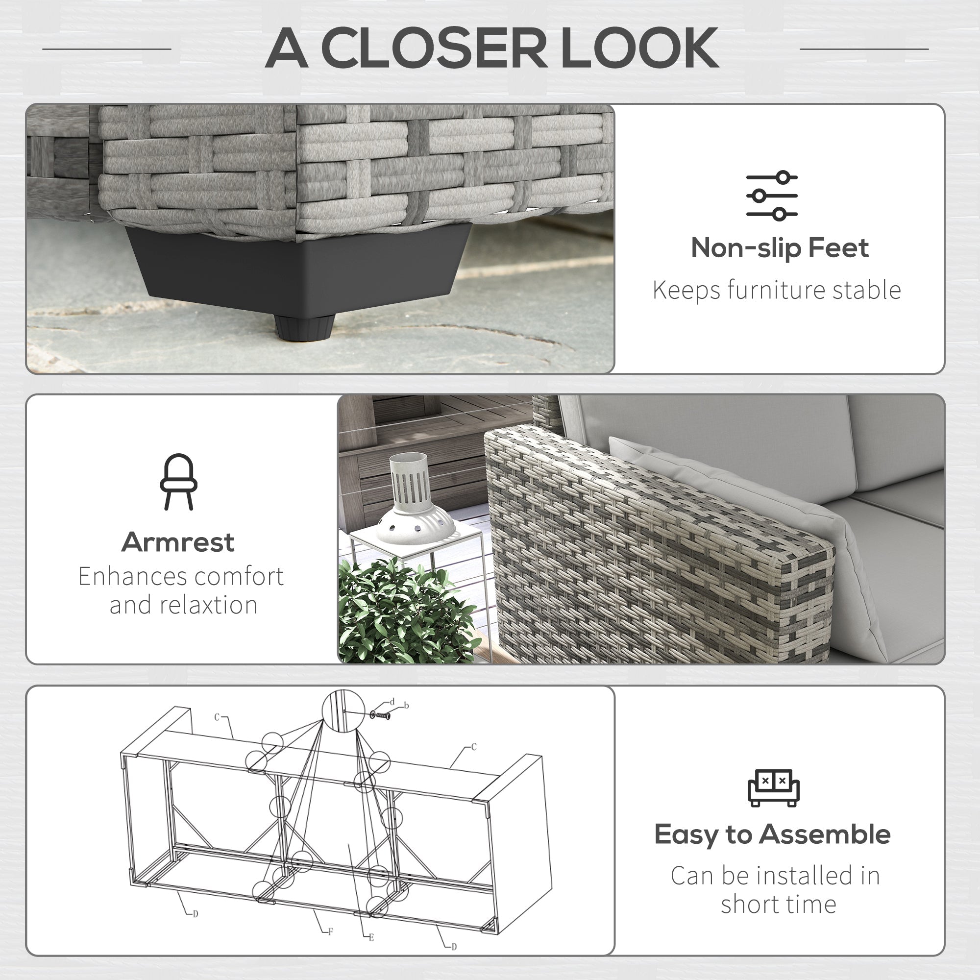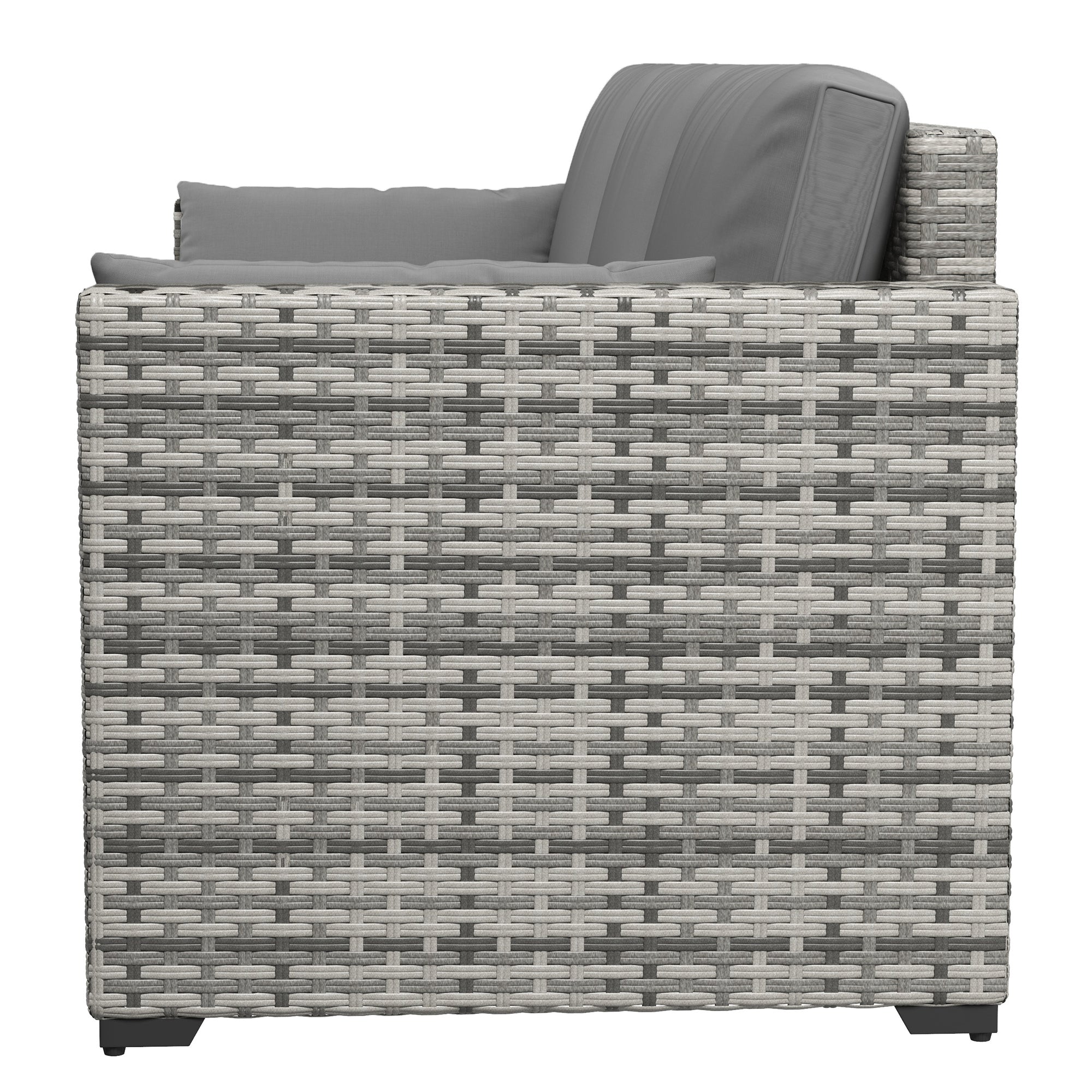 it brings indoor comfort outside. Each seat is plushly padded. Cushions on the back are soft yet supportive, and pillows on the side let you adjust or lay your head. Remove the covers, and cleaning is easy. - Outdoor Furniture: This 3-seat outdoor sofa was hand-woven with PE rattan to give it the same look as classic wicker furniture but with better resistance to UV and water. Supporting our couch is a galvanized steel frame to make it water-safe and allow a heavy-duty weight capacity.