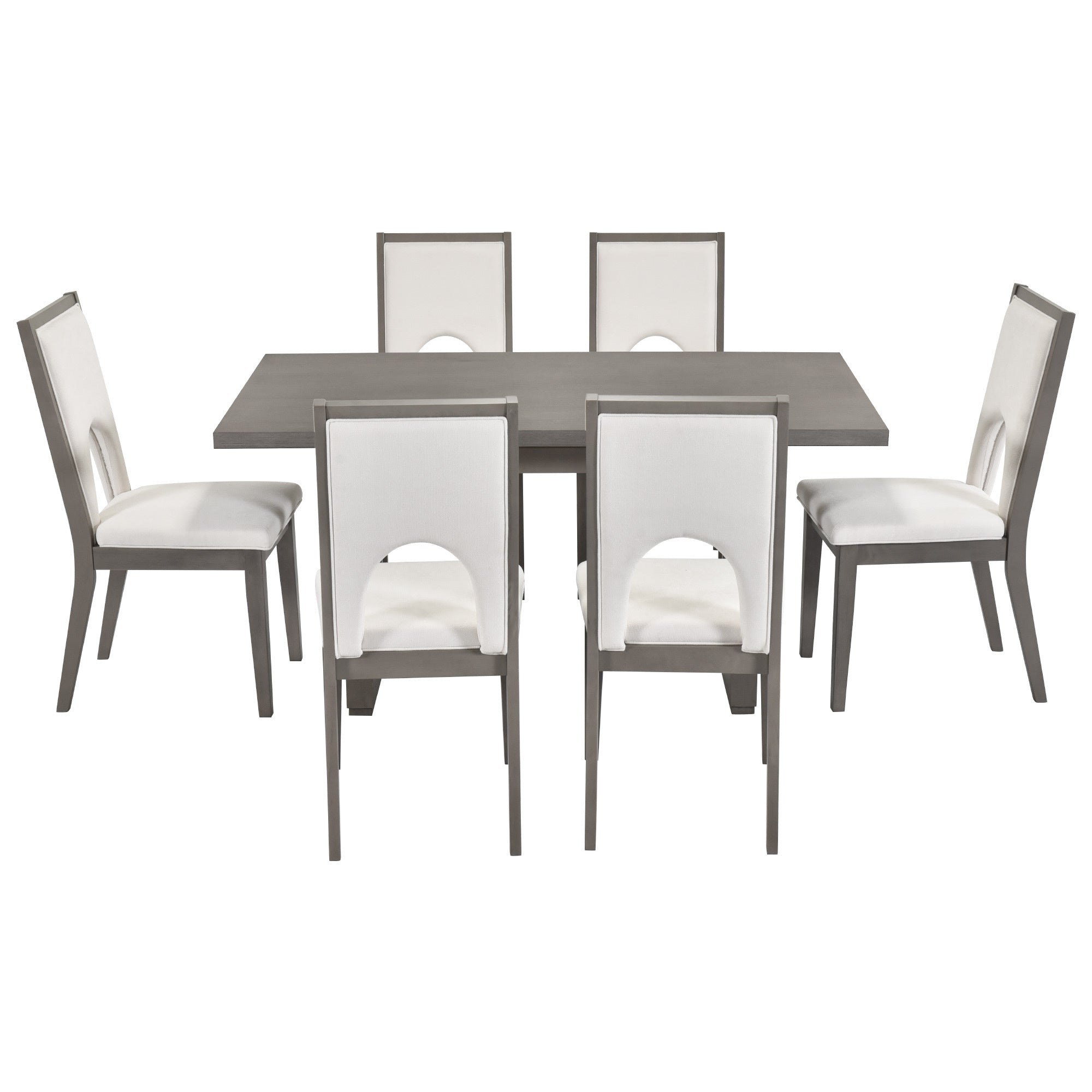Wood Dining Table Set for 6, Farmhouse Rectangular Dining Table and 6 Upholstered Chairs Ideal for Dining Room, Kitchen (Grey+Beige)