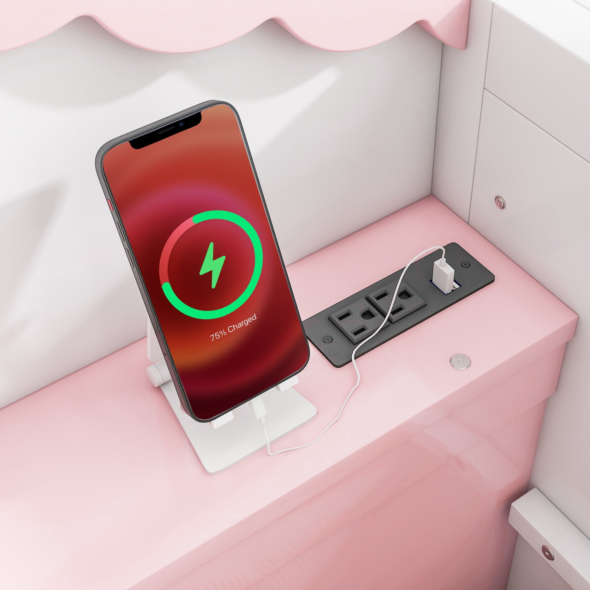Be the first to review “Wood Full Size House Murphy Bed with USB, Storage Shelves and Blackboard, Pink+White” Cancel reply