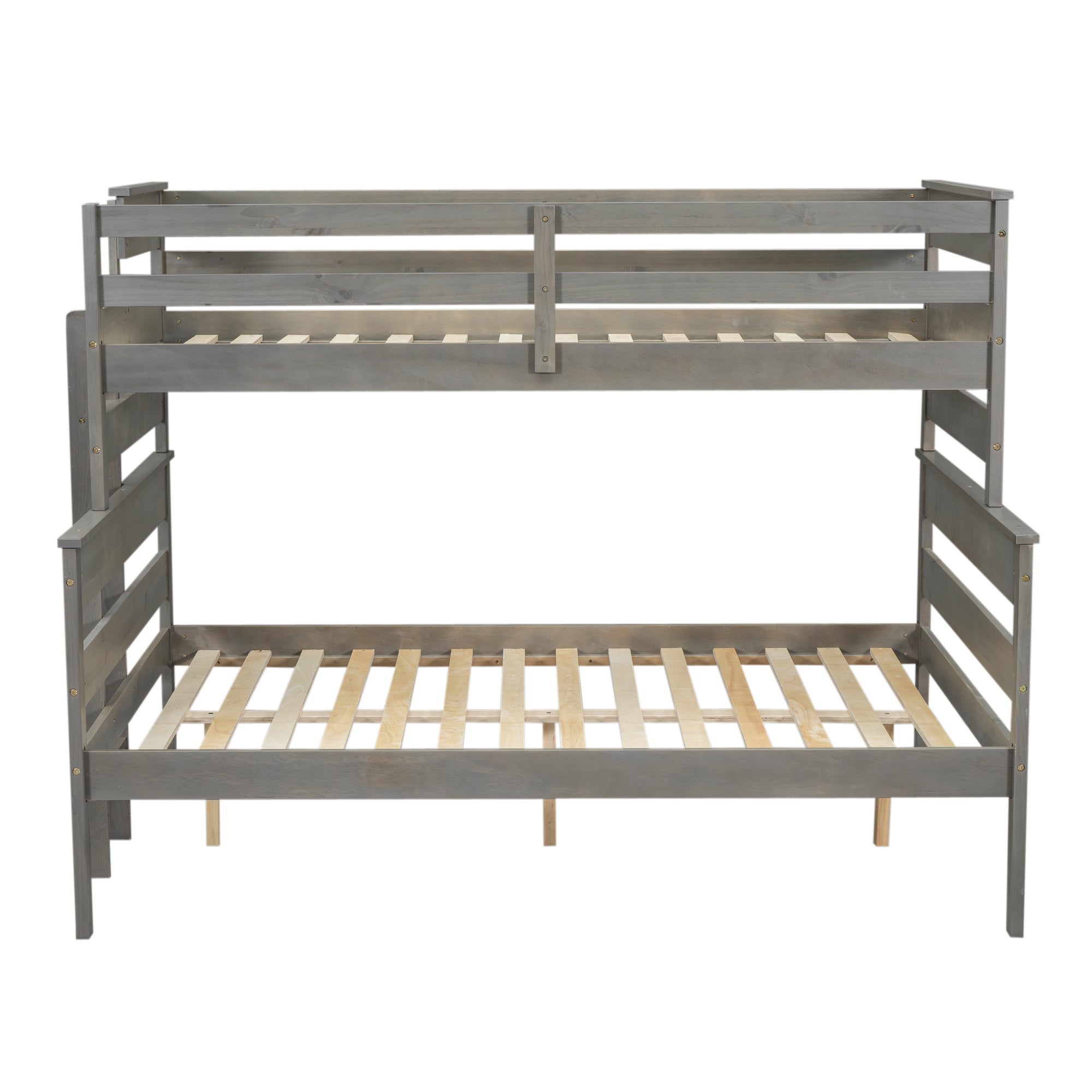 Wood Twin XL over Queen Bunk Bed with Ladder, Gray