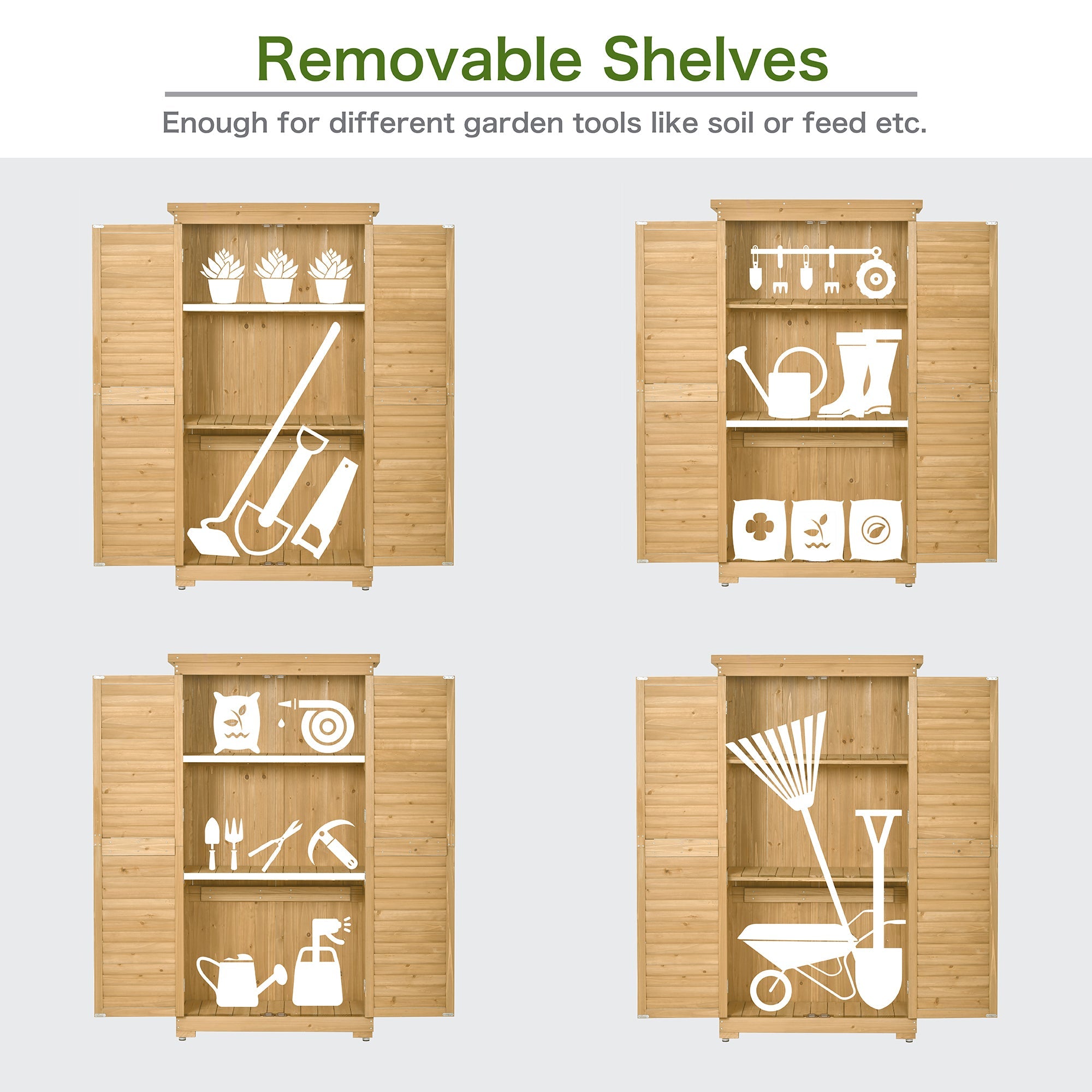 - [Ample Storage] Spacious storage room with two removable shelves inside, this garden shed is Ideal for storing different tools and accessories such as watering can, spades, pots etc. If your garage is full, this is a great solution to housing your extra items that will help organize your yard.