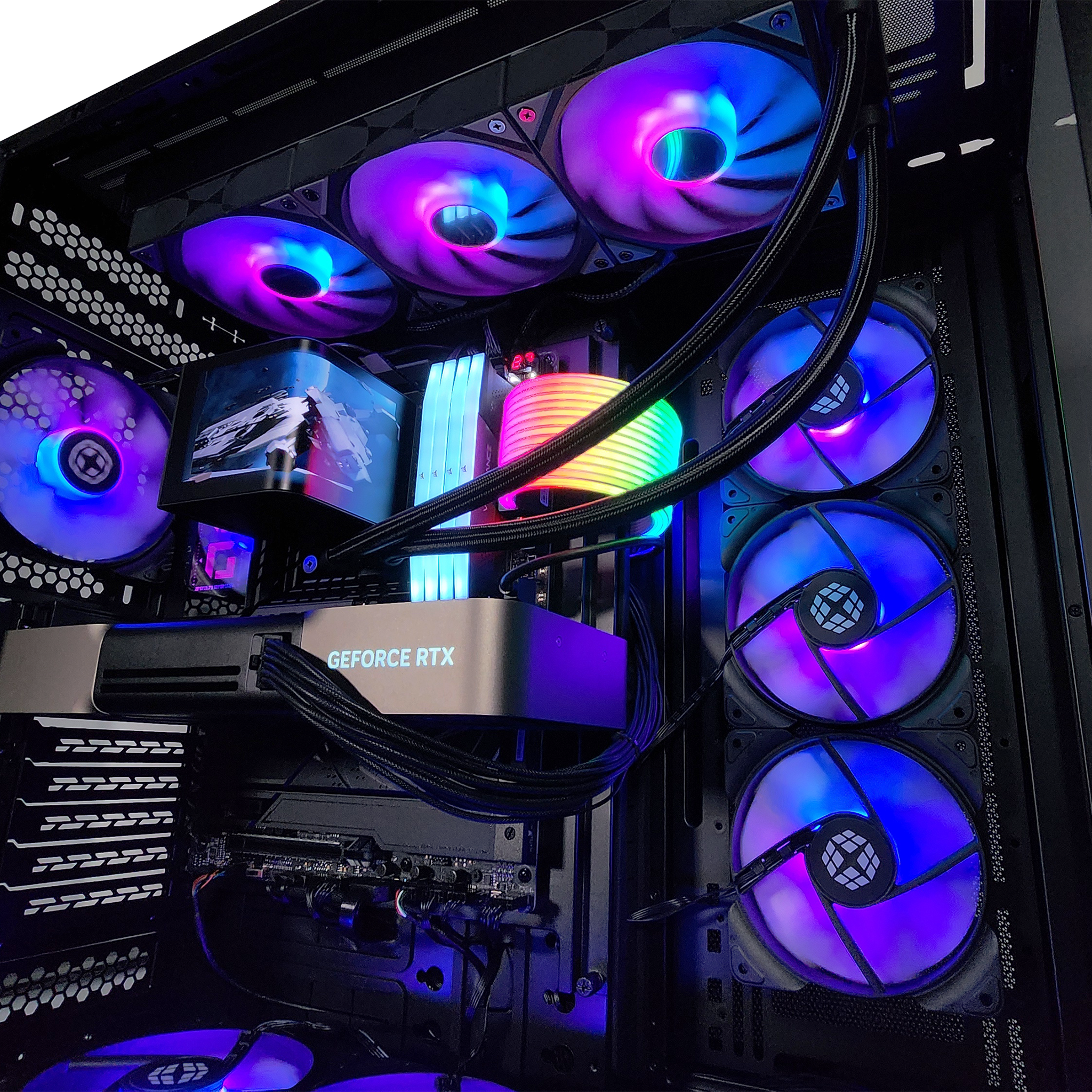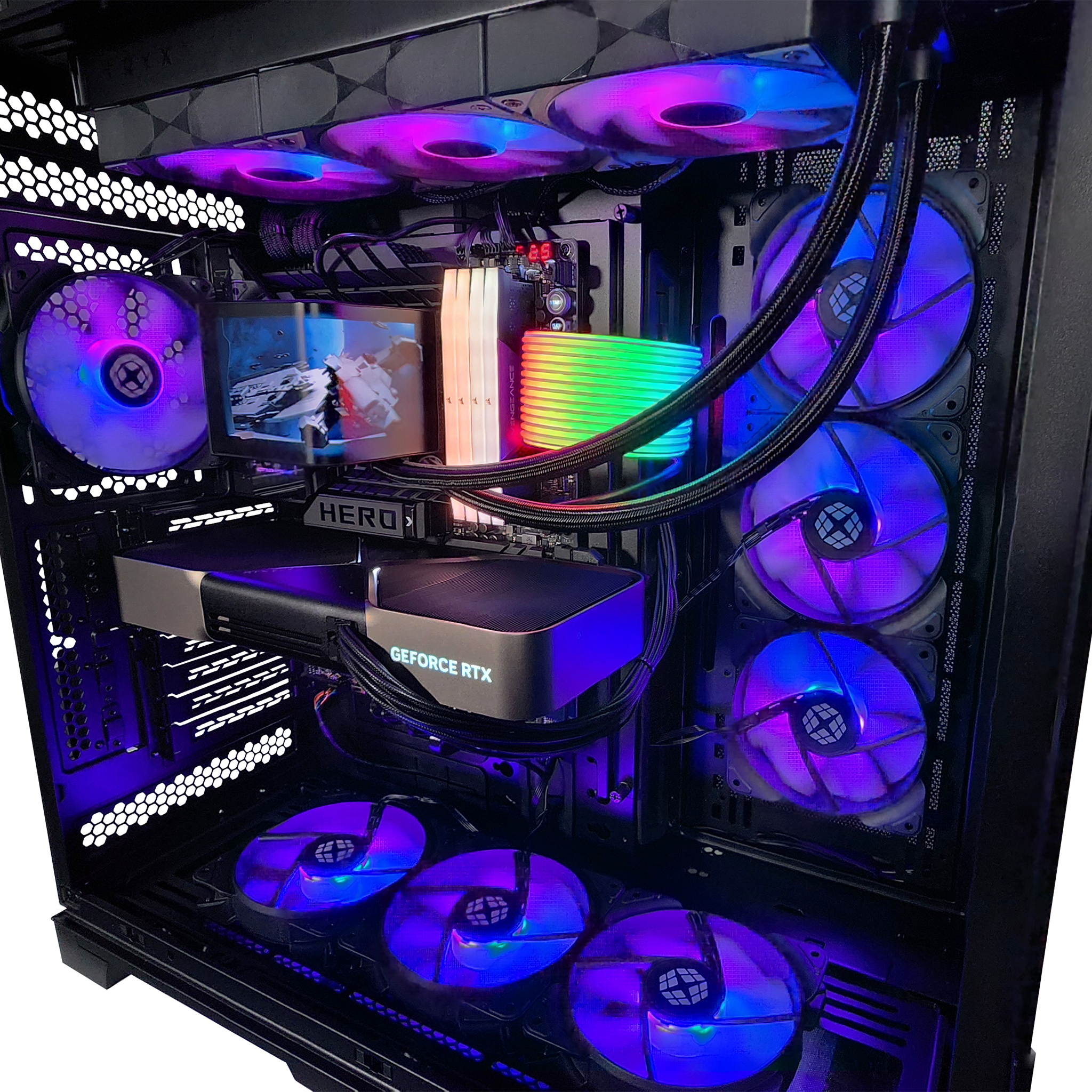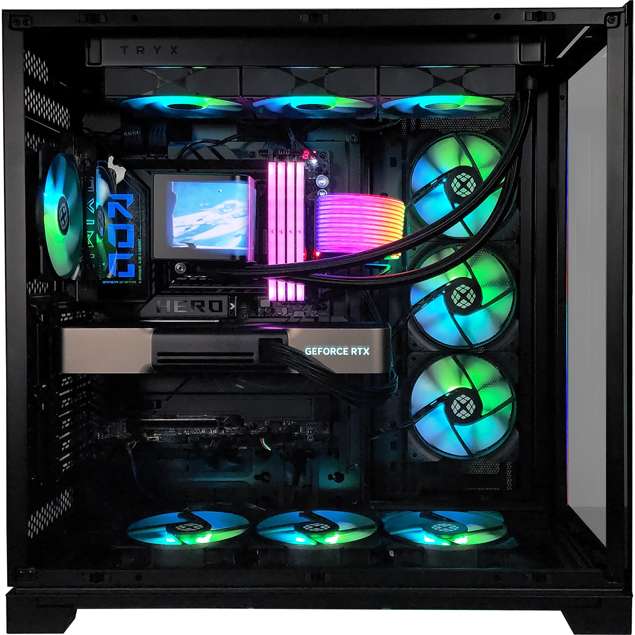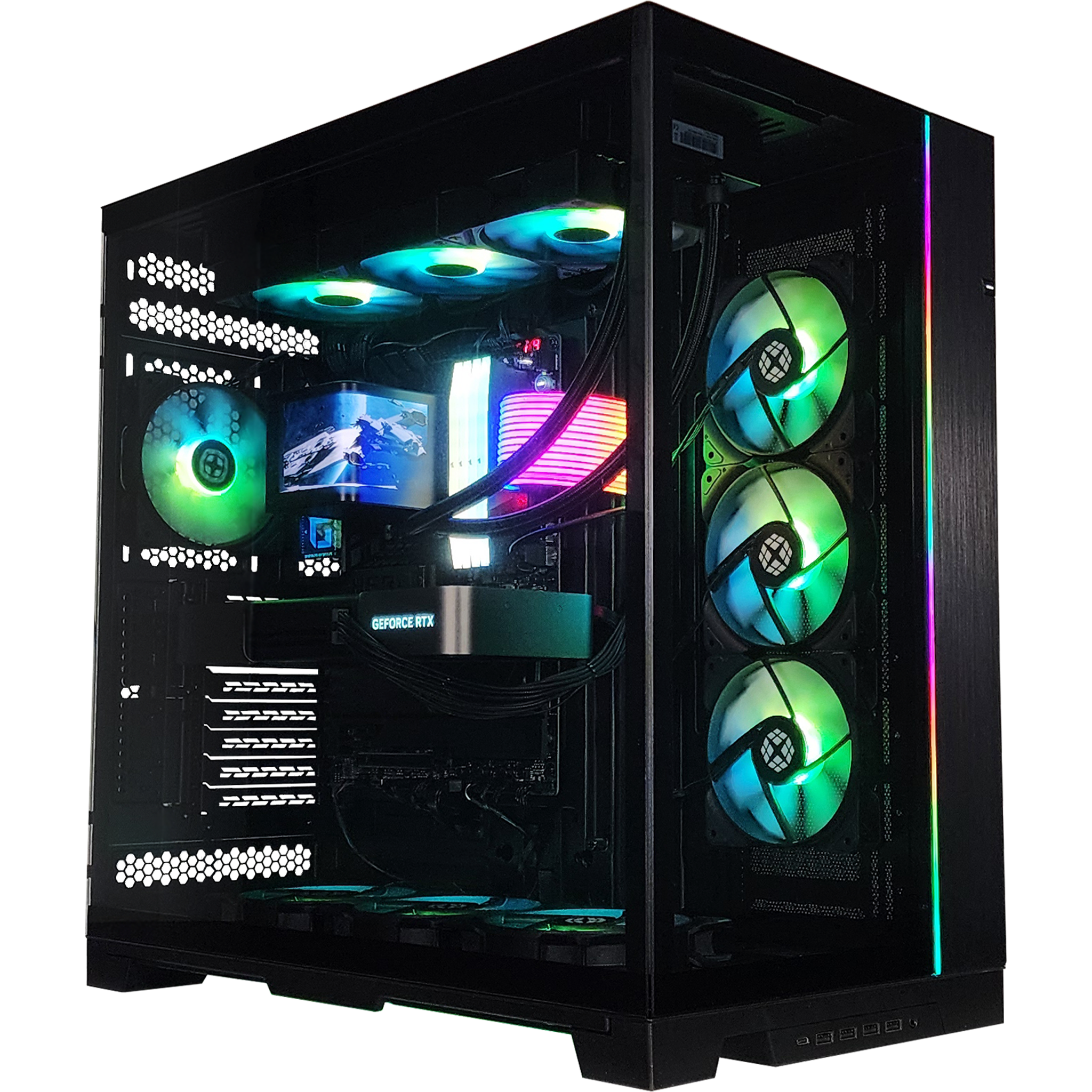 The GX77 EVO XL redefines the full-tower experience with an unmatched combination of modularity, space, and performance. Built for enthusiasts who demand more, this case expands on the acclaimed O10D EVO with a reversible design, allowing you to showcase your build from either side. The removable front pillar ensures an uninterrupted view of your high-end components and precision-crafted RGB lighting, turning your setup into a statement of power and innovation.