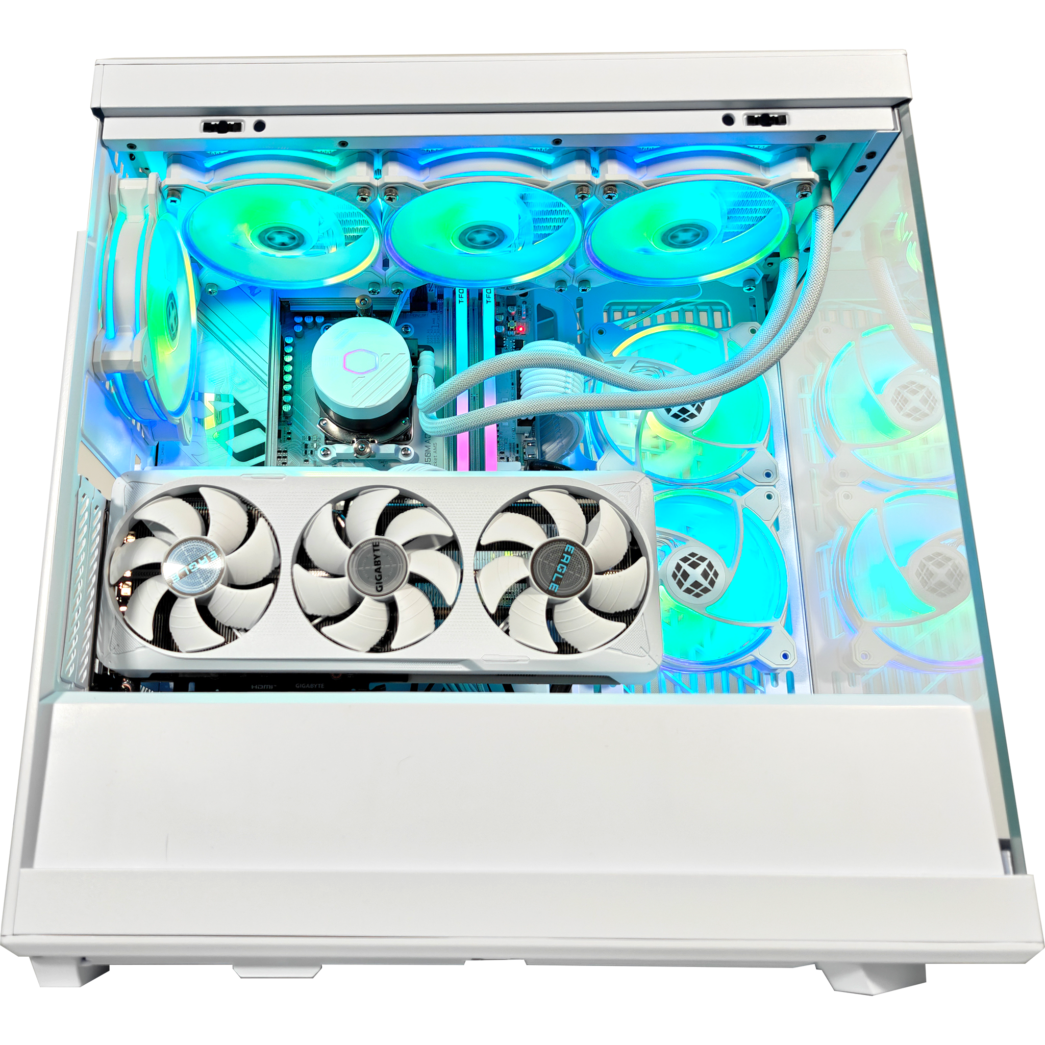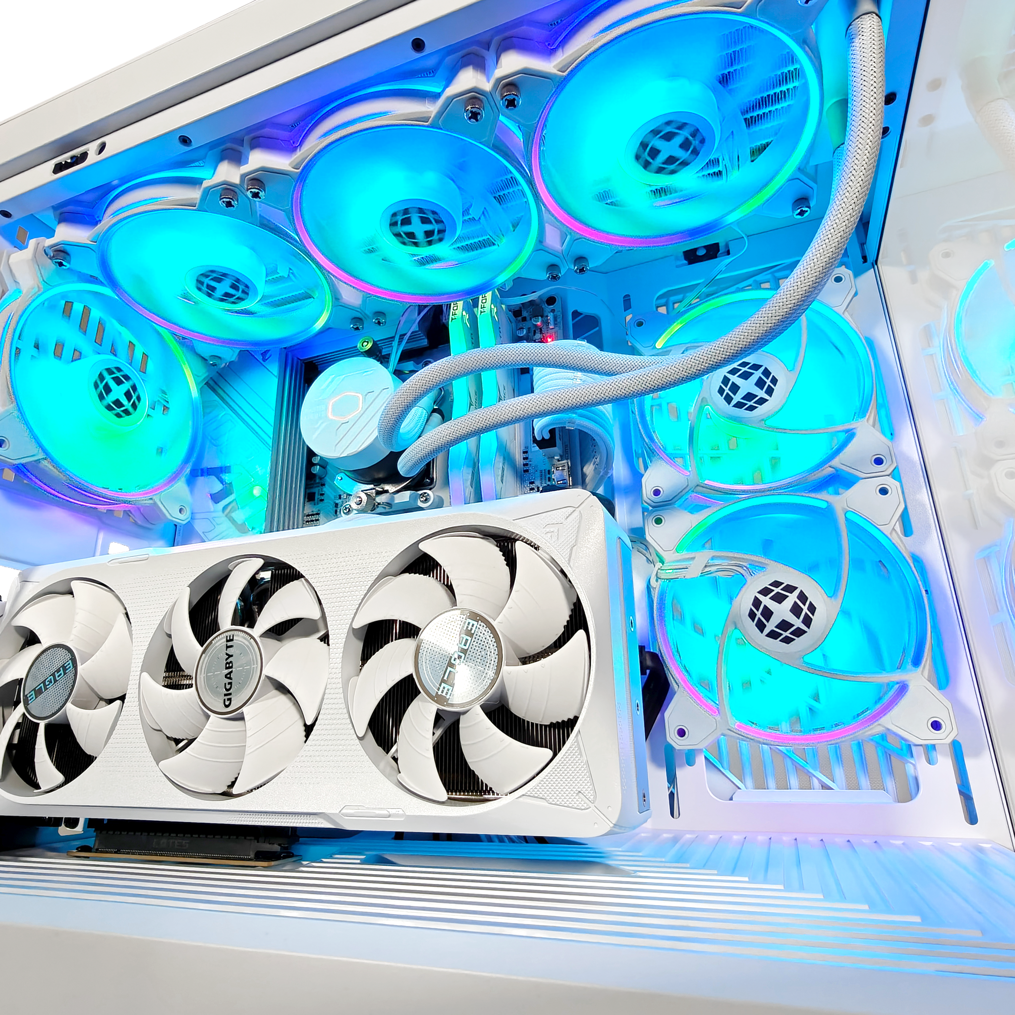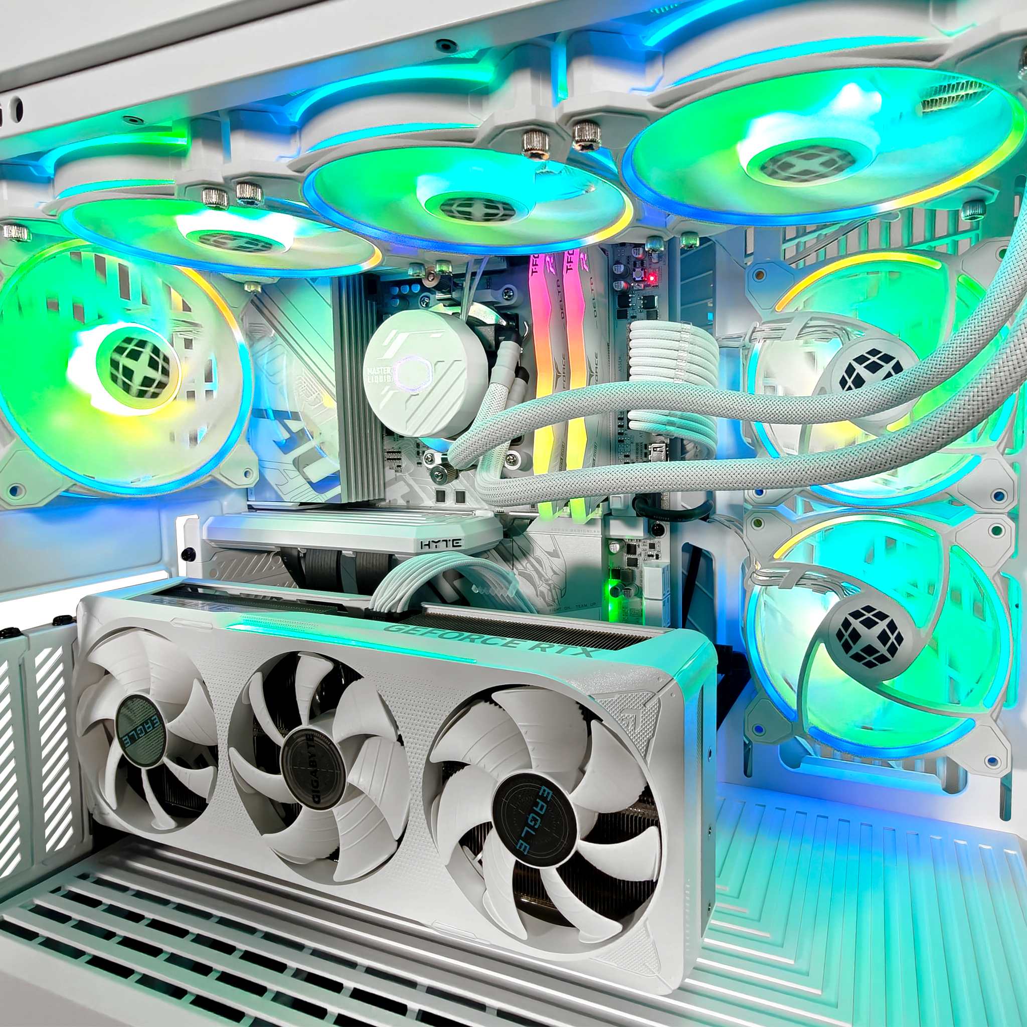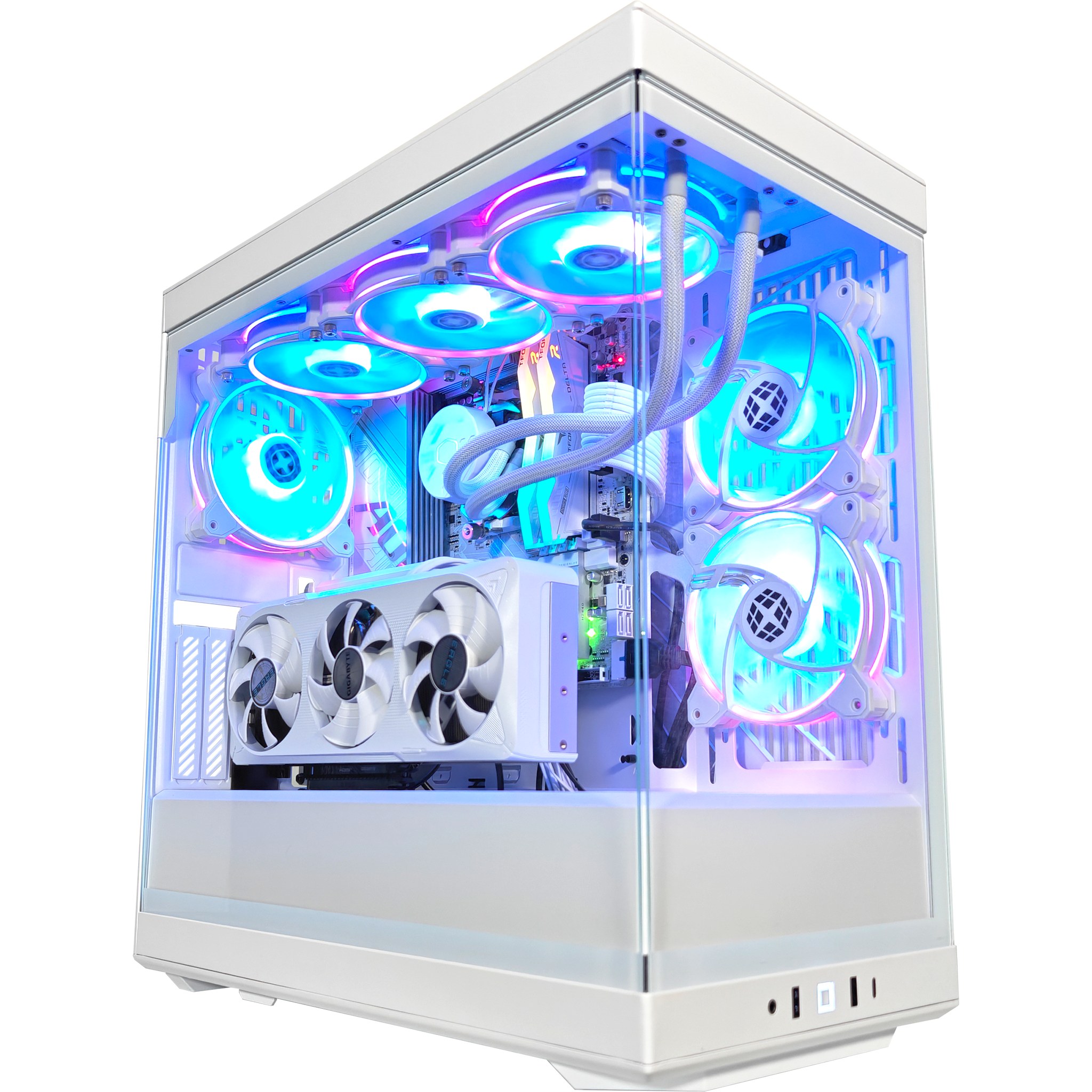Meet the Y40 Ghost Extreme —a case so bold, it’s practically built to steal the spotlight. With crisp beveling, a panoramic glass panel, and a seamless design, this rig isn’t just built to perform—it’s engineered to impress. Under the hood, an AMD Ryzen™ 7 9700X and NVIDIA® GeForce RTX™ 5070 bring next-gen speed and power, while 32GB of DDR5 6000MHz RAM ensures multitasking stays buttery smooth. The GIGABYTE B850M AORUS ELITE WIFI6E ICE motherboard keeps everything locked in for elite performance, and with a 2TB NVMe Gen 4 SSD, load times don’t even exist. Cooling? Handled. A 360mm AIO Water Cooler and Fractal Aspect fans keep temps in check while looking clean. Future-proof GPU support, a built-in riser cable canopy, and extra breathing room for max airflow mean this isn’t just a build—it’s domination in a box.