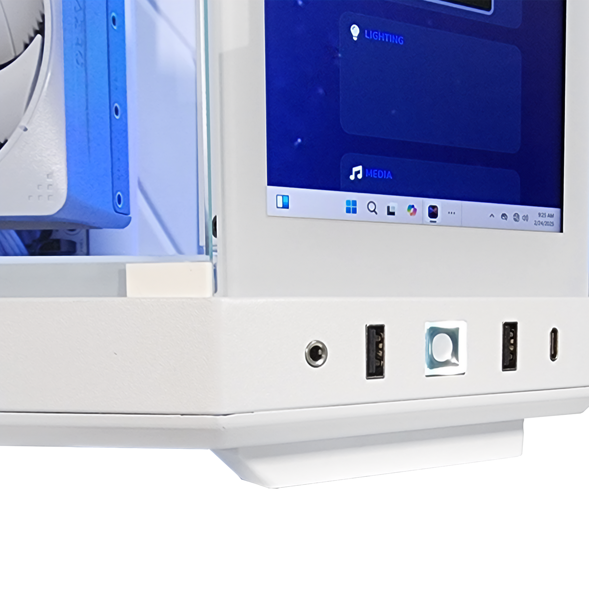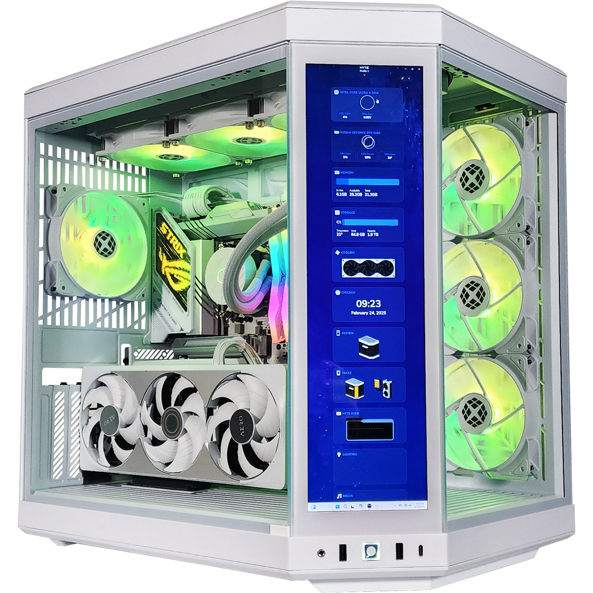 Cooling is on another level with a 360mm AIO water cooler and Fractal Aspect RGB fans, all working in sync with the Y70’s signature Y-series ventilation system for max airflow. Tool-free removable panels, extensive cable management, and floating storage sleds make upgrades effortless. And with a 14.9” 2.5K touchscreen display, you have next-level control at your fingertips.