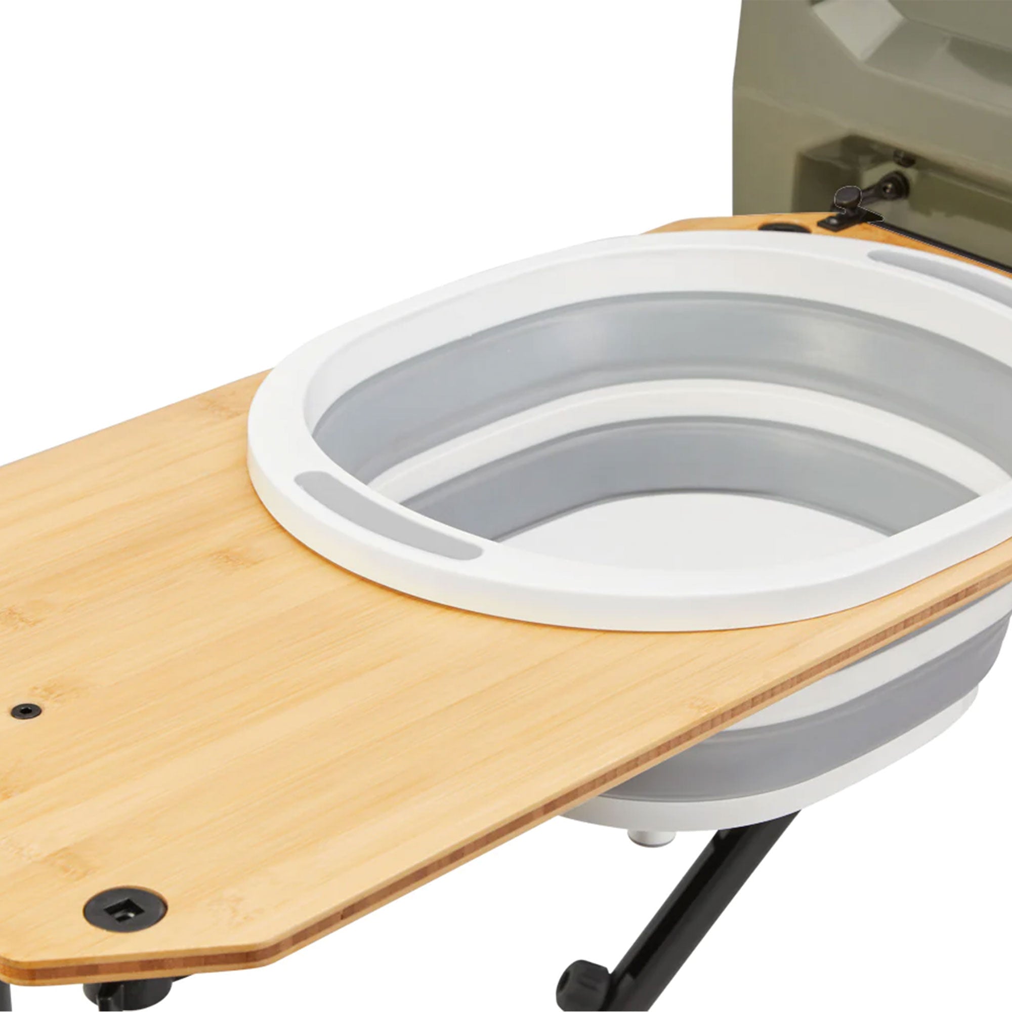 Embark on a culinary adventure with the Yakima EXO OpenRange Deluxe Outdoor Camp Kitchen Station Cooking Storage System. Engineered for seamless integration, this camp kitchen is compatible with the EXO SwingBase or EXO TopShelf using the included EXO cleat system, ensuring a rapid setup to kickstart your camping experience.
