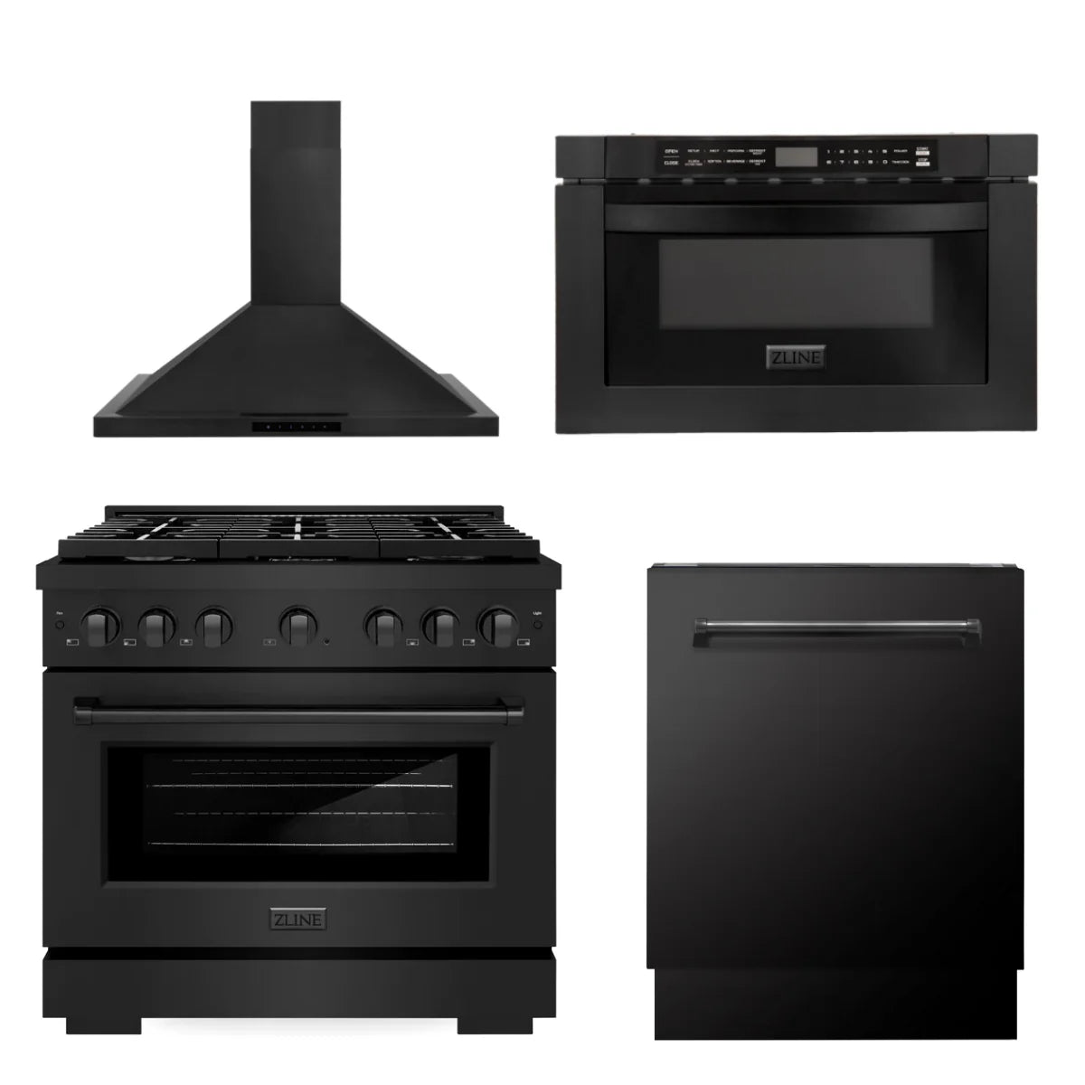 ZLINE Appliance Package – 36 in. Dual Fuel Range, Range Hood, Microwave Drawer, 3 Rack Dishwasher (4KP-RARH36-MWDWV)