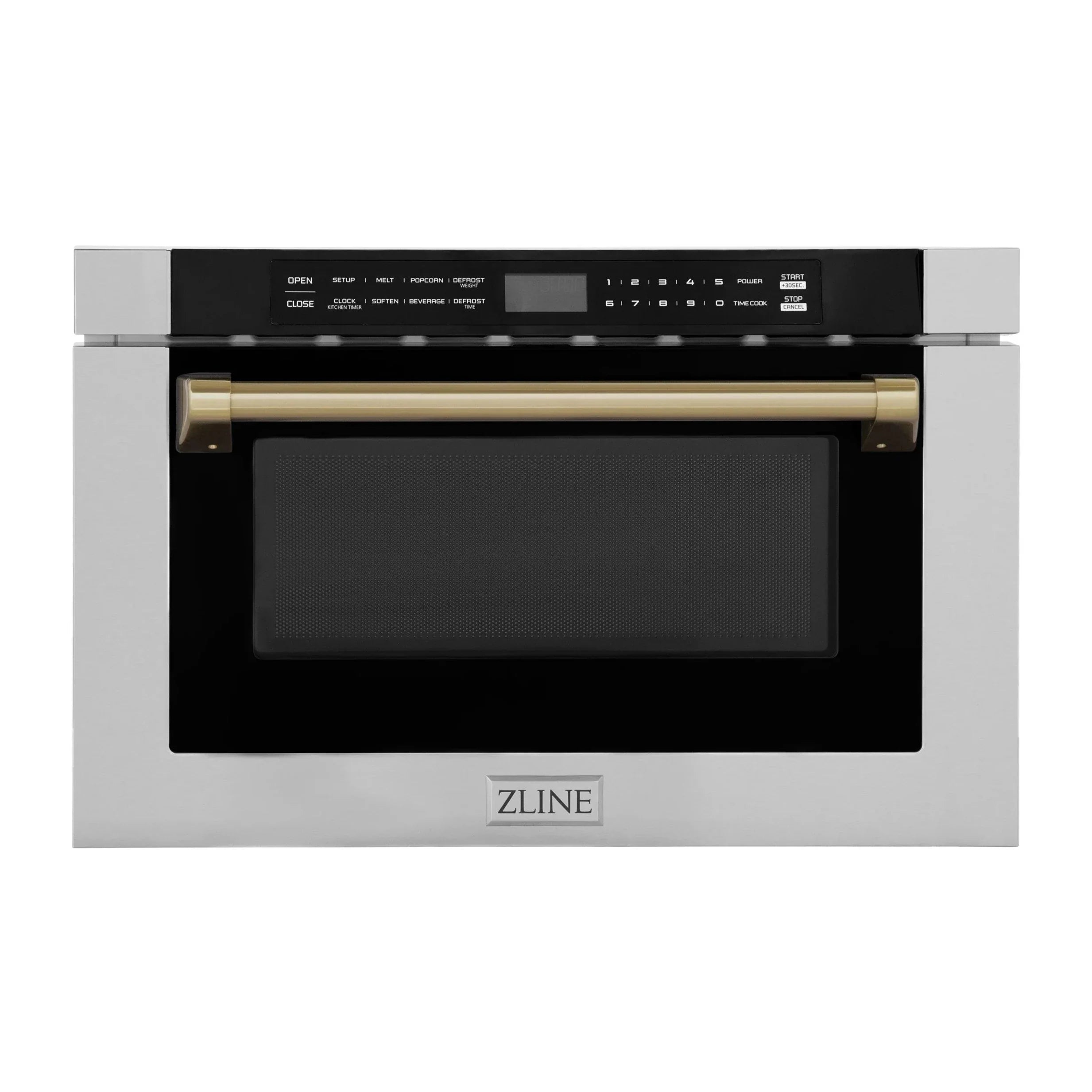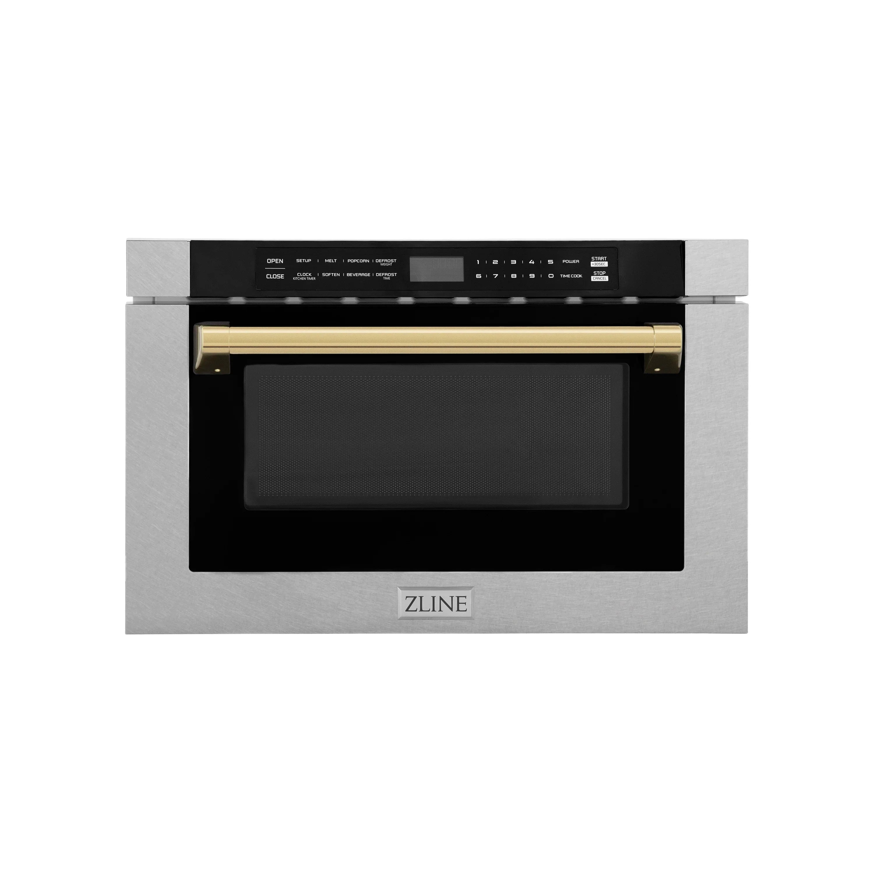 ZLINE Autograph Edition 24″ 1.2 cu. ft. Built-in Microwave Drawer with a Traditional Handle in Stainless Steel and Gold Accents (MWDZ-1-H-G)