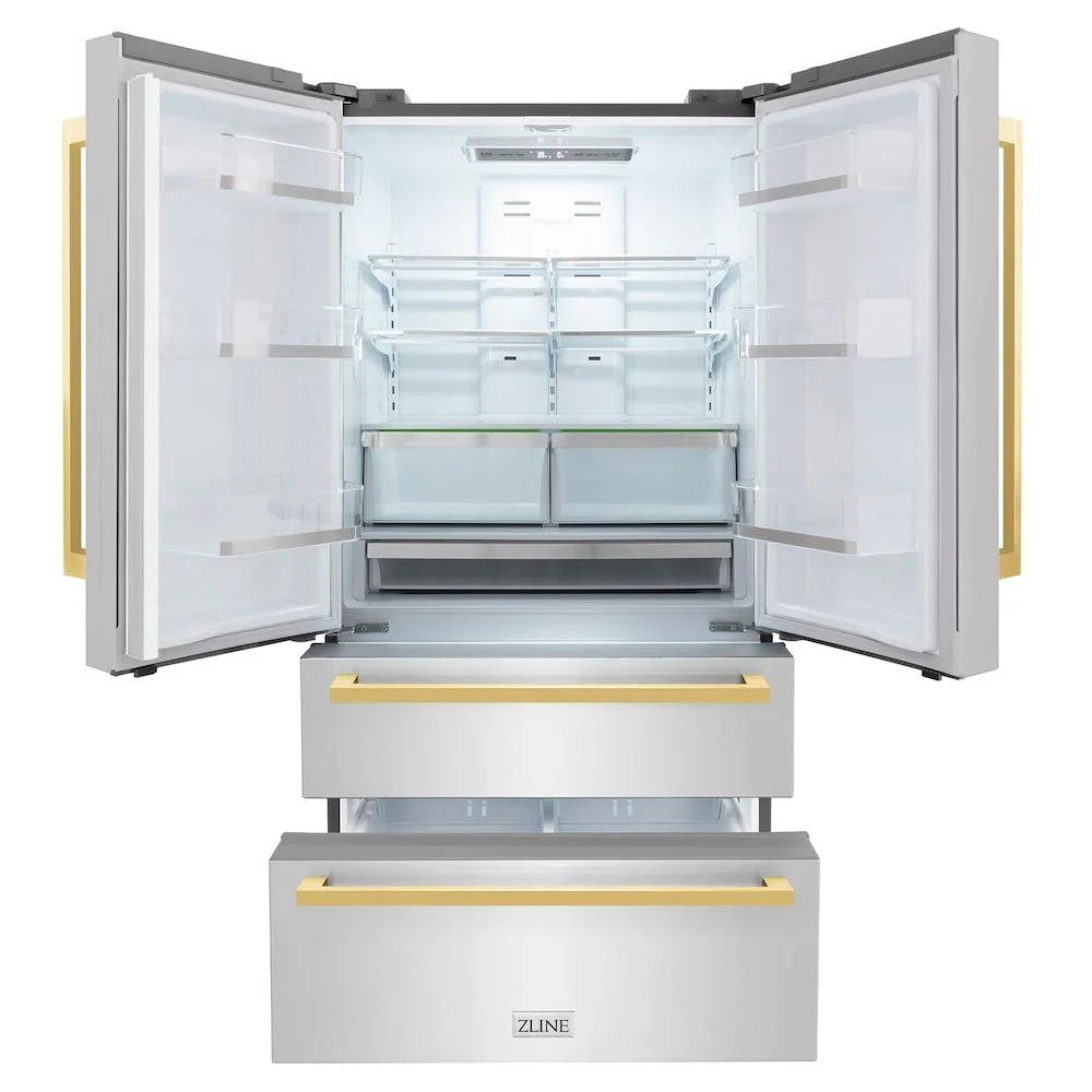 ZLINE Autograph Edition 36″ 22.5 cu. ft. Counter-Depth French Door Refrigerator with Ice Maker in Stainless Steel with Modern / Traditional Handles Options